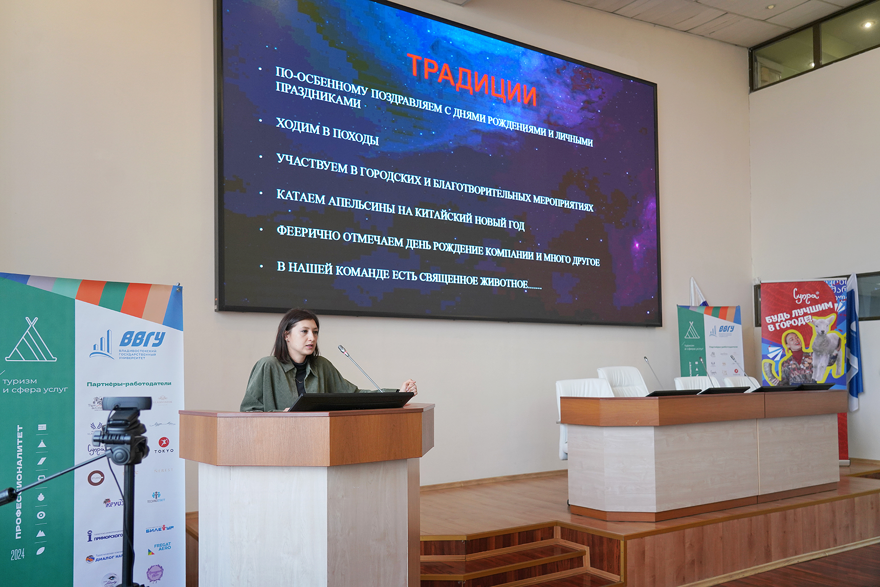 В зале Учёного совета ВВГУ прошёл день карьеры образовательного кластера среднего профессионального образования «Туризм и сфера услуг». С презентацией перед студентами выступили ведущие компании региона.