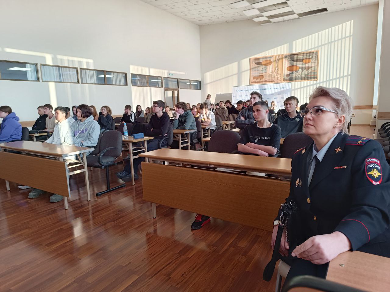 Перед учащимися выступила подполковник полиции Лариса Елисеева. Специалист Центра рассказала студентам о признаках терроризма и экстремизма – корне этого явления. Лектор поделилась реальными историями уголовных дел. Слушателям разъяснили последствия административной и уголовной ответственности за совершение преступлений.