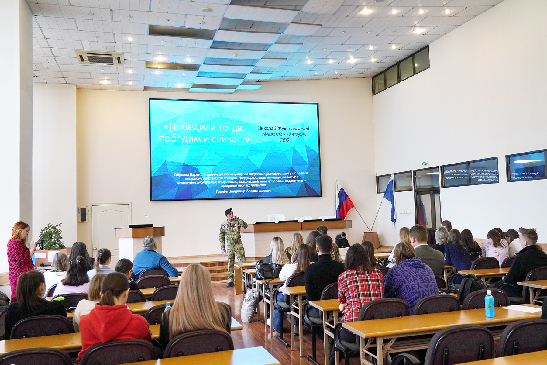 Проректор по молодёжной политике и учебно-воспитательной деятельности Юлия Чебова заключила, что встречи с героями – ключевой элемент в формировании активной гражданской позиции и вовлечённости молодёжи в жизнь своей страны.![]()