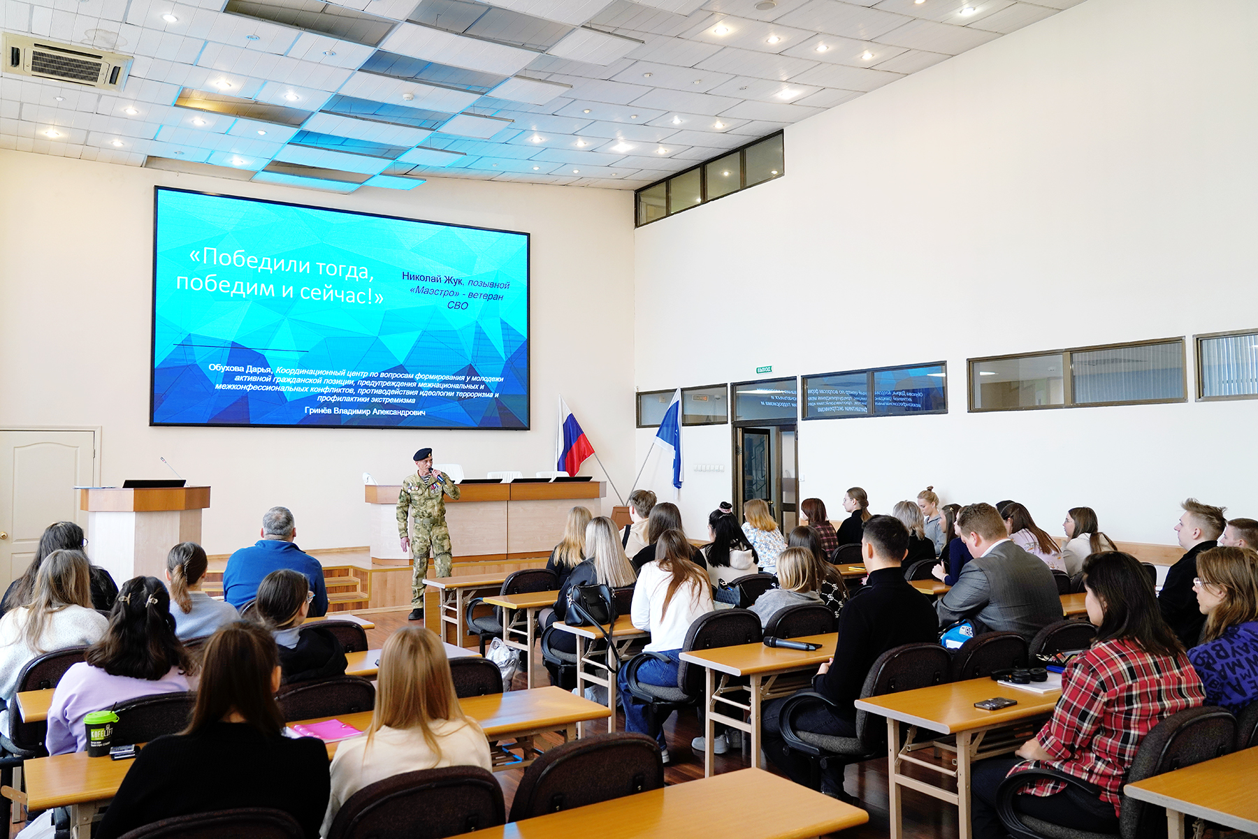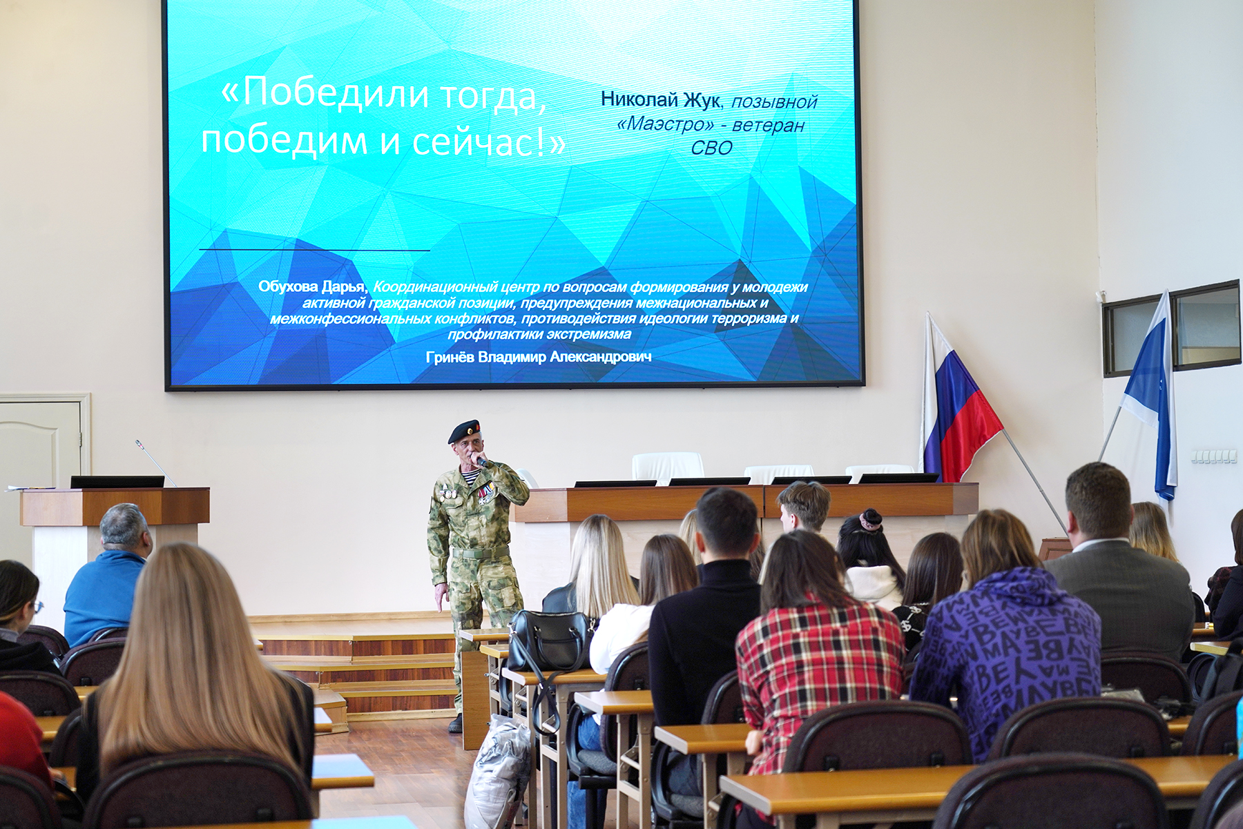 Управление молодёжной политики ВВГУ провело встречу в рамках проекта «Тогда победили и сейчас победим». Гостем университета стал ветеран специальной военной операции, кавалер Ордена Мужества Николай Жук.
