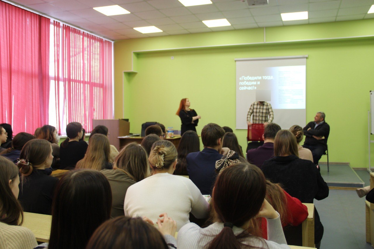 Мероприятие вызвало большой интерес, как у студентов, так и преподавателей филиала, собрав полную аудиторию. На встрече с участником СВО присутствовало более 100 студентов разных направлений подготовки: Юриспруденция, Физическая культура, Психология образования, Преподавание в начальных классах, Дизайн, Торговое дело, Экономика и бухгалтерский учет и другие.![]()