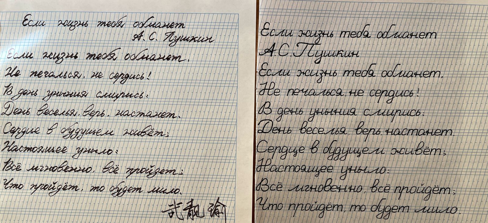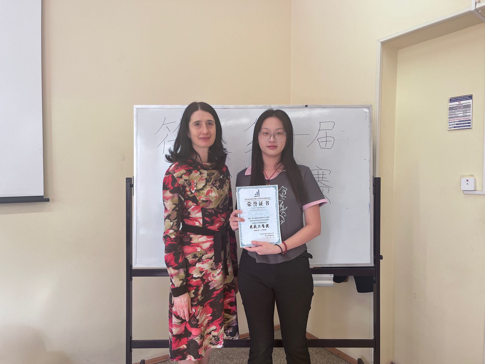 - Выражаю самые тёплые поздравления всем победителям! Благодарю каждого конкурсанта за активное участие! Искренне благодарю директора Института педагогики и лингвистики Юлию Олеговну Коновалову, профессиональная оценка которой обеспечила честность конкурса. Благодарю всех преподавателей за помощь в подготовке. Конкурс русской каллиграфии завершился, но его влияние оказалось далеко идущим и долгосрочным. Он не только предоставляет студентам площадку для самовыражения, но и пробуждает у всех энтузиазм в изучении русского языка, позволяет большему количеству людей ощутить очарование русской каллиграфии. Я надеюсь, что студенты смогут использовать этот конкурс как возможность продолжить усердно изучать русский язык, постоянно совершенствовать свои навыки письма, а также наследовать и развивать прекрасную культуру Китая и России. В будущем мы проведем еще больше красочных культурных мероприятий и с нетерпением ждем новой встречи с вами, чтобы вместе исследовать тайны языка и ощутить очарование культуры!