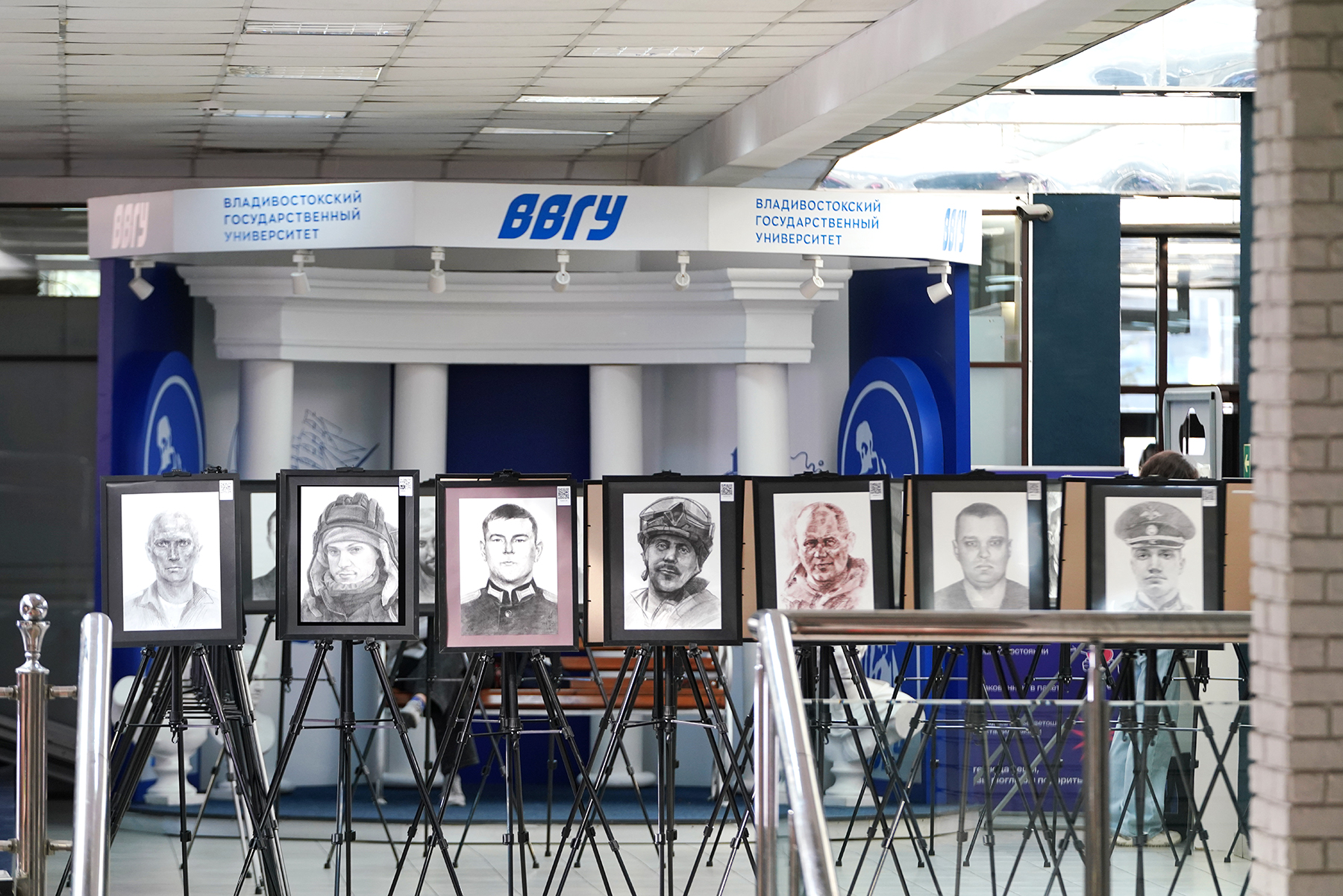 Во Владивостокском государственном университете (ВВГУ) торжественно открылась мультимедийная выставка «Портрет Героя» — проект, ставший символом связи поколений и данью уважения защитникам Отечества.
