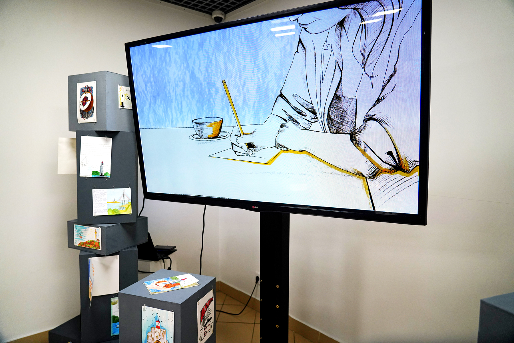 Затем студенты-программисты Михаил Шматков и Игорь Калашников вместе с преподавателем Евгенией Федоренко «оживили» открытки при помощи современных компьютерных технологий. Анимация открыток является оригинальным и сложным в техническом плане процессом, в котором студенты проявили себя как сложившиеся специалисты в области информационных технологий.