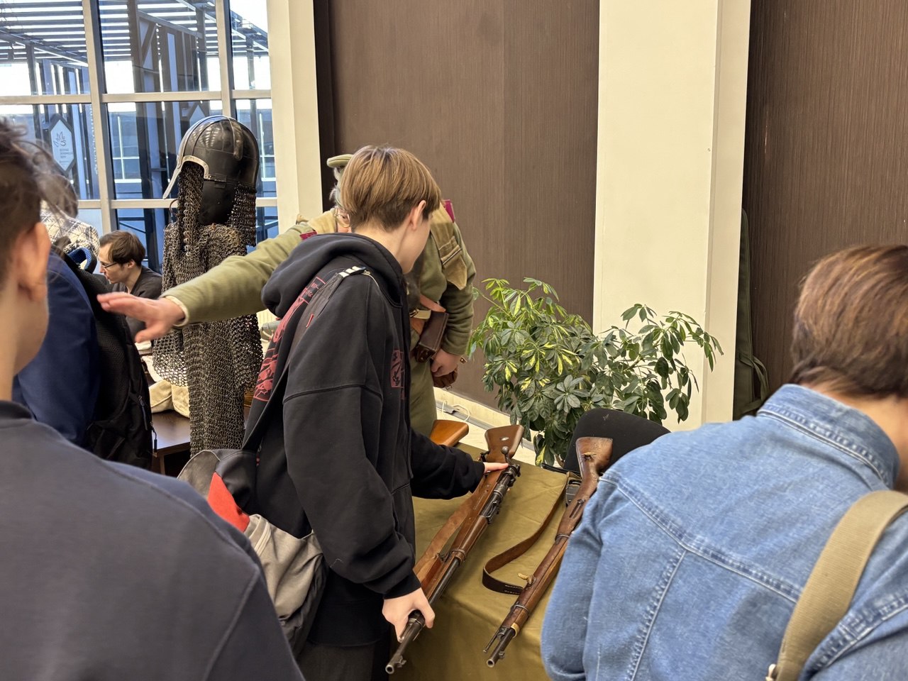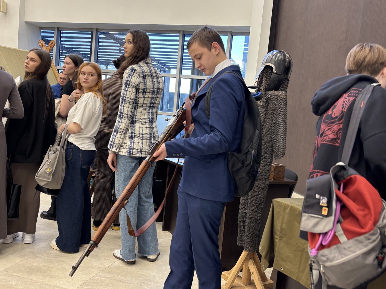 На интерактивных станциях гости знакомились с историческими макетами оружия, плели кольчуги, собирали доспехи, примеряли на себя роль военнослужащих разных эпох.