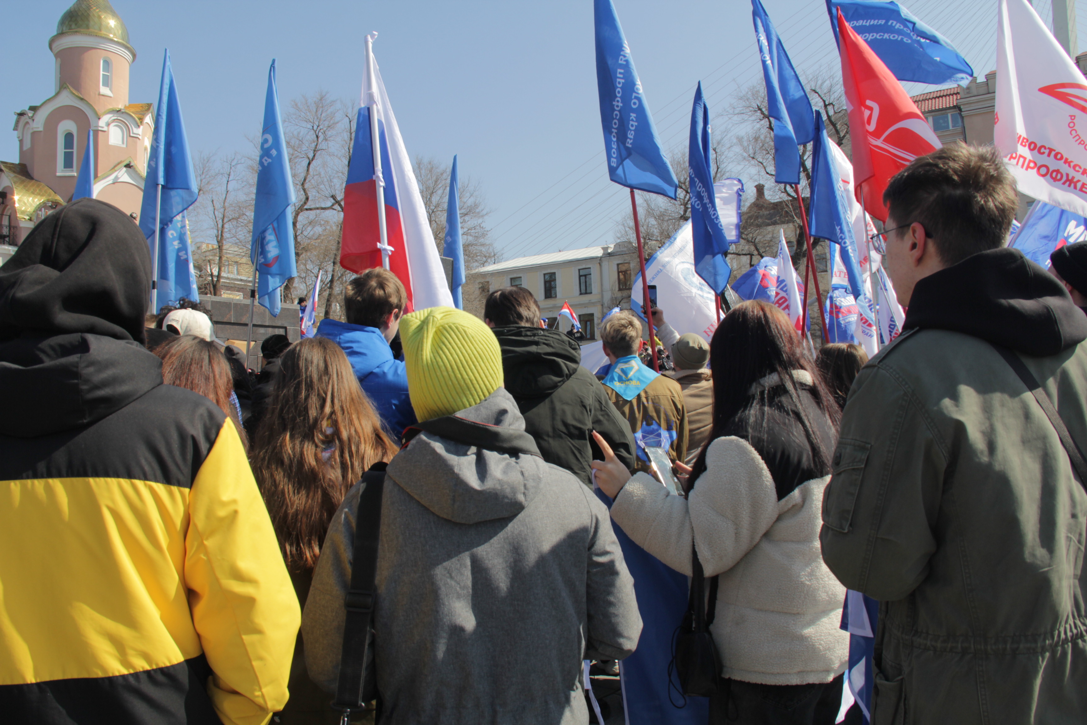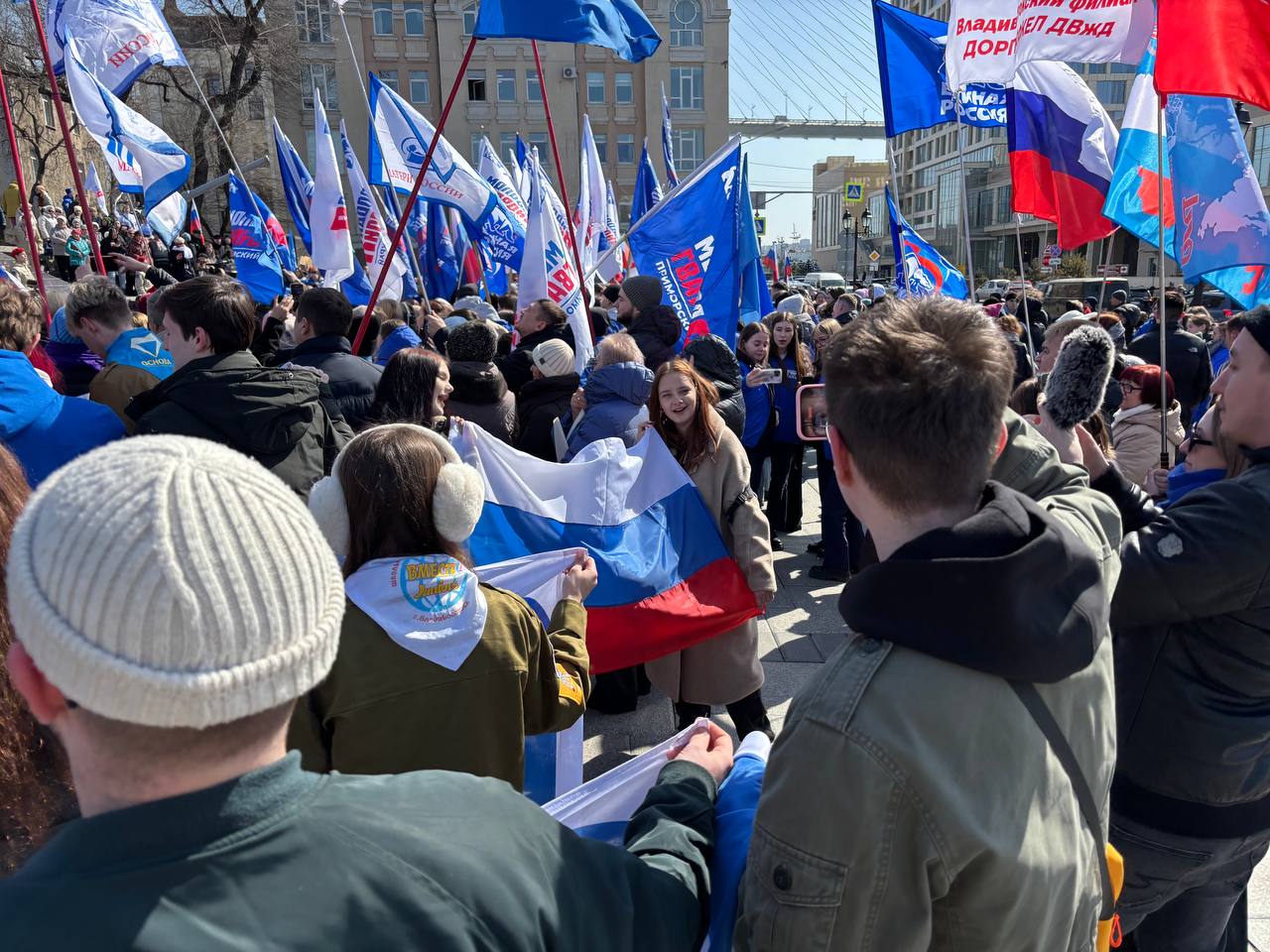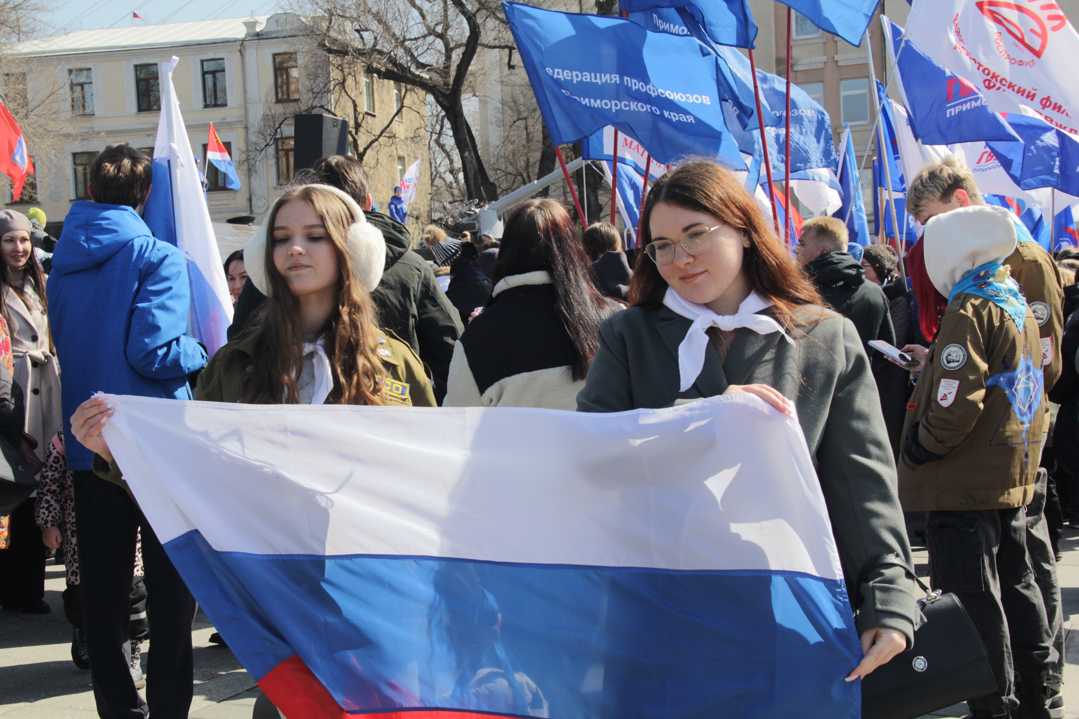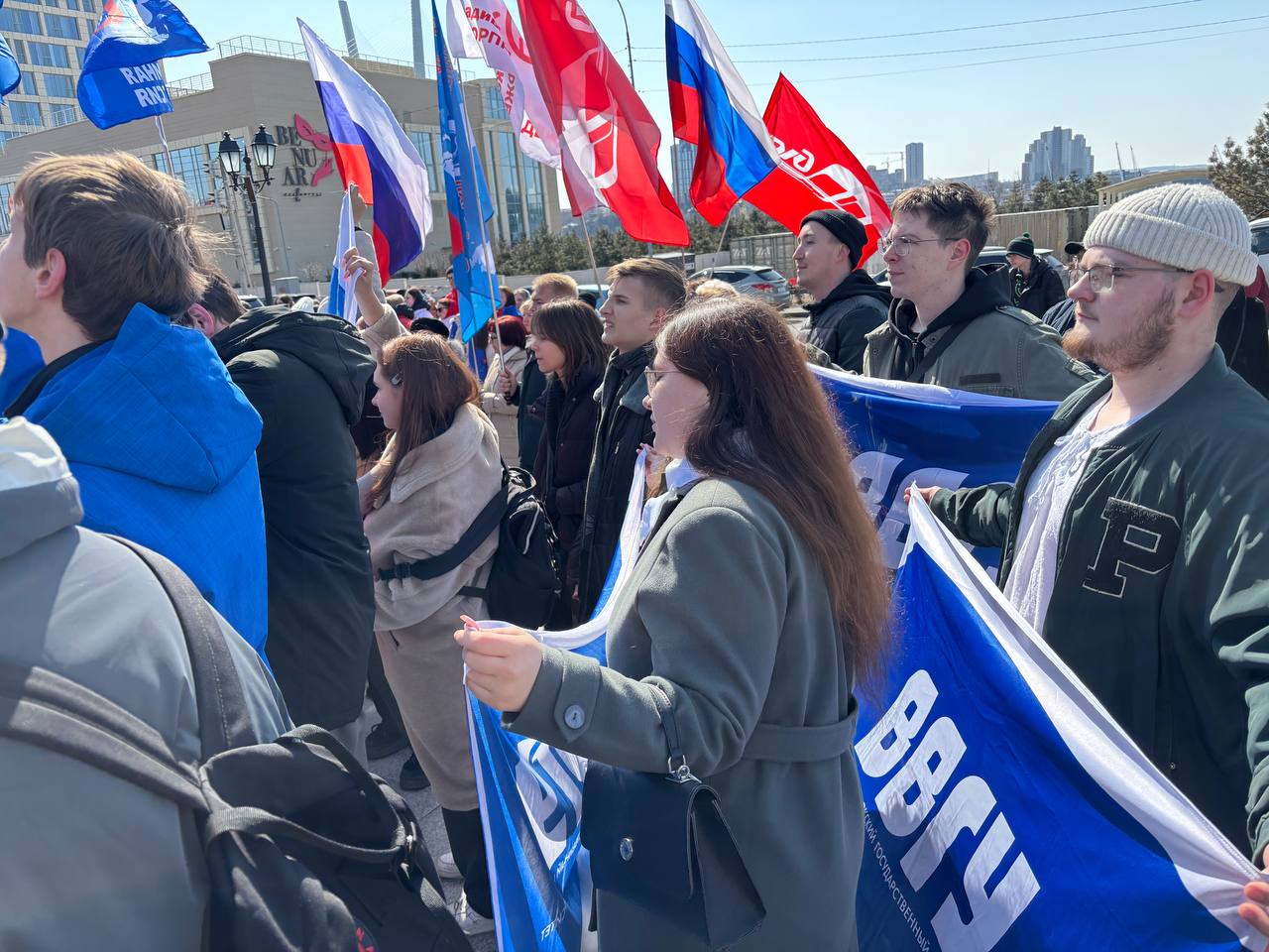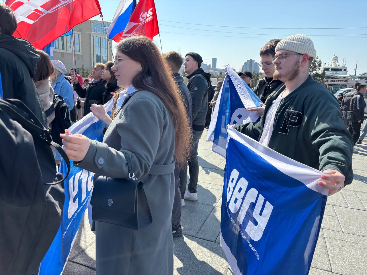 Студенты и сотрудники ВВГУ приняли участие в митинг-концерте ко Дню воссоединения Крыма с Россией. Масштабное мероприятие объединило во Владивостоке ветеранов, общественников и молодёжь со всего Приморья.