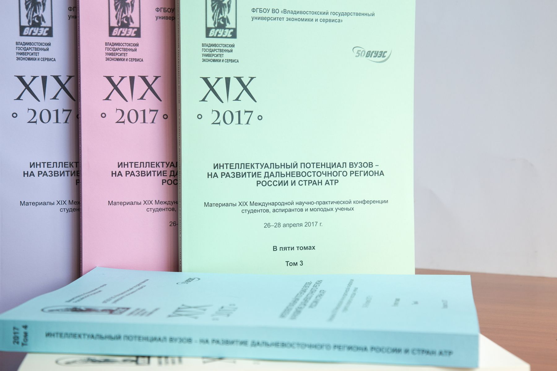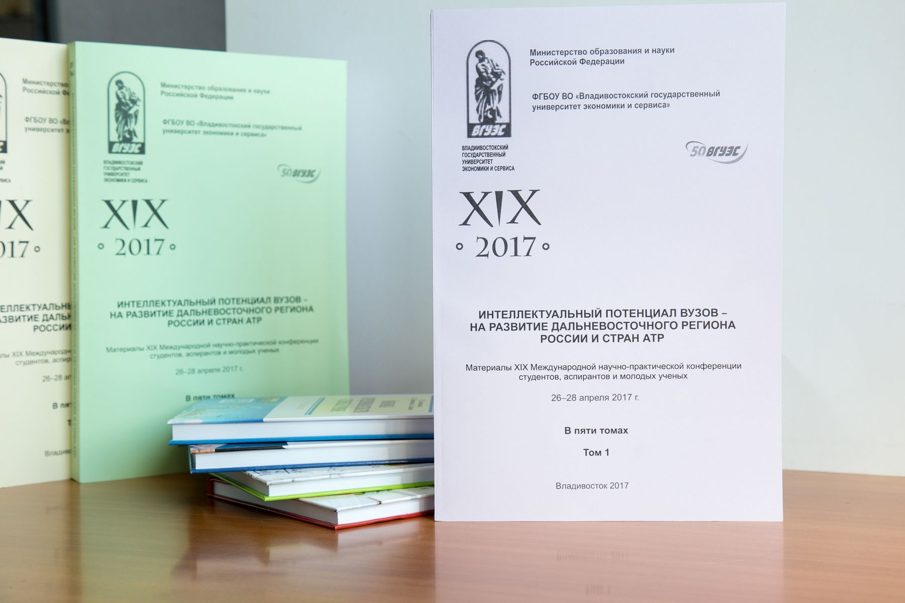 Кроме того, к юбилейной дате во взаимодействии с Департаментом научно-исследовательской работы изданы пять томов сборников материалов XIX Международной научно-практической конференции студентов, аспирантов и молодых ученых «Интеллектуальный потенциал вузов – на развитие Дальневосточного региона России и стран АТР».