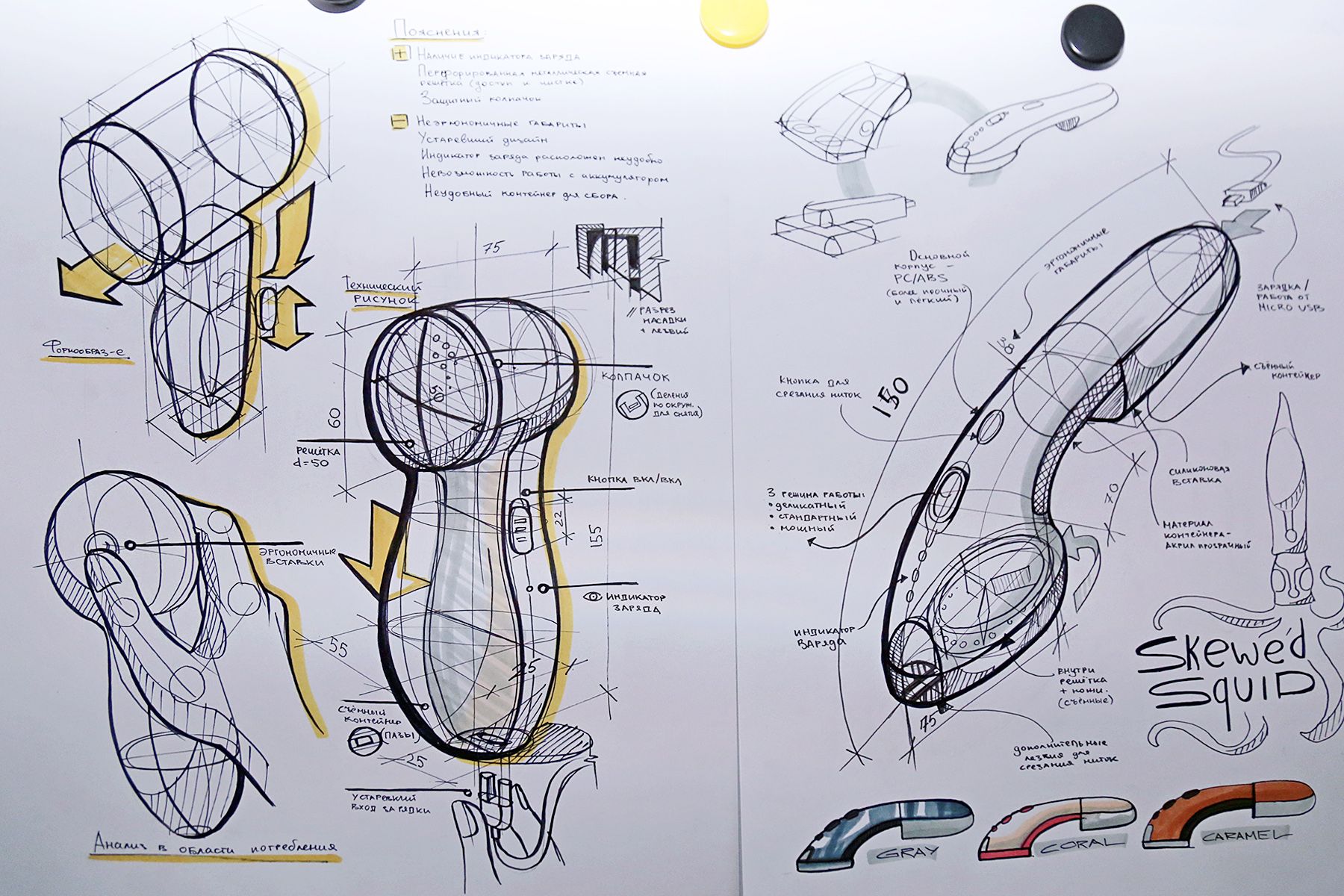 - Ребята получили очень интересное задание – выполнить редизайн машинки для удаления катышков. Казалось бы, что нового тут можно придумать? Но нашим участникам предстоит именно это и сделать. По условиям задания им предоставляется исходный объект с заданными техническими характеристиками и внутренней «начинкой». Так что изобразить, например, супер-большой или наоборот супер-маленький аппарат не получится. После изучения свойств и формы машинки, анализа рынка и других условий, участники должны придумать изделию новую оболочку. Зарисовать модель в скетчинге (технике быстрой зарисовки), перевести рисунок в трехмерный вид, распечатать подетально на 3D принтере и соединить все детали в готовый объект. После чего подготовить презентационный видеоролик и защитить проект перед экспертным советом. И всё это – в режиме жесткого временного ограничения.