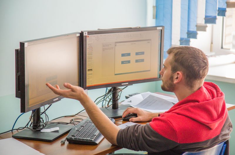 — Студенты прорабатывают дизайн и логику WEB-игры. Игра состоит из поля, по которому летают мыльные пузыри. Участникам необходимо с помощью компьютерной мышки ловить и лопать эти пузыри. В зависимости от того, какой пузырь они лопают, столько баллов они и получают. Звучит просто, но это потому что я так объясняю, на языке программирования всё намного сложнее, – рассказывает Максим Сачко, главный эксперт компетенции «WEB-дизайн и разработка».