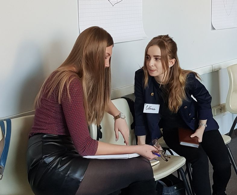 «Большое спасибо ПАО Сбербанк за первый день тренинга! Было безумно интересно! В ходе разного рода заданий, студенты и преподаватели работали вместе, забыв о статусе друг друга, что способствовало сплочению и формированию каких-то новых взаимоотношений между нами. Из особенно понравившегося, хотелось бы отметить технику шести шляп Боно – удивительно, насколько просто менять свой образ и мышление, меняя виртуальные шляпы. С нетерпением жду следующих тренингов!» -поделилась впечатлениями Газиева Эльмира, студентка группы БЭУ-15-ФК