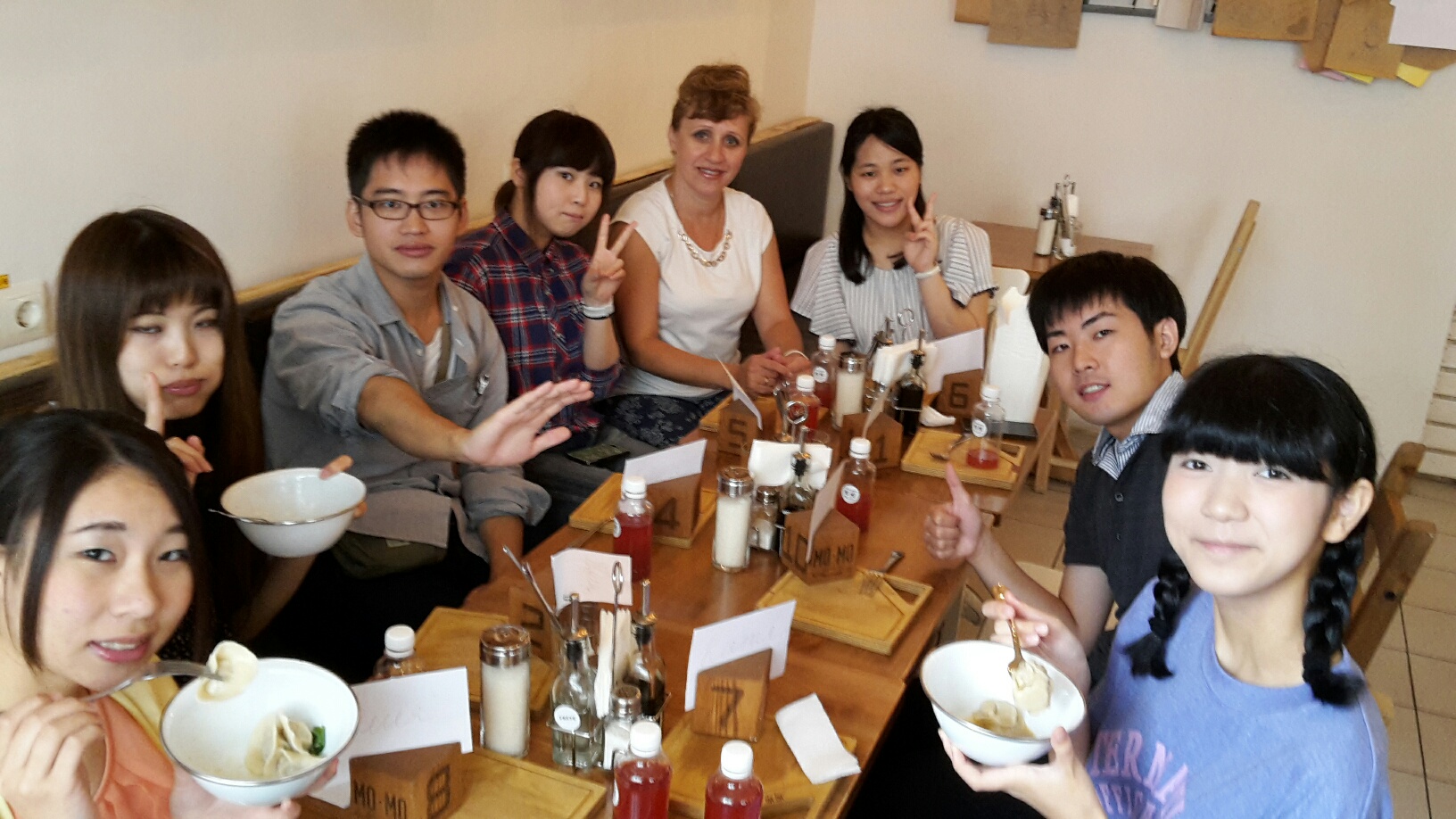 - Экскурсии по городу у нас проходят почти ежедневно: мы побывали на видовых площадках, осмотрели известные памятники, посетили ярмарку приморских продуктов. Знакомимся с русской национальной кухней и уже сходили в кафе «Ух ты, блин». Попробовали и русский борщ. В кафе «Мо-мо» японские студенты участвовали в мастер-классе по лепке пельменей. И так это у них мастерски получалось, что работники кафе даже предложили у них поработать.