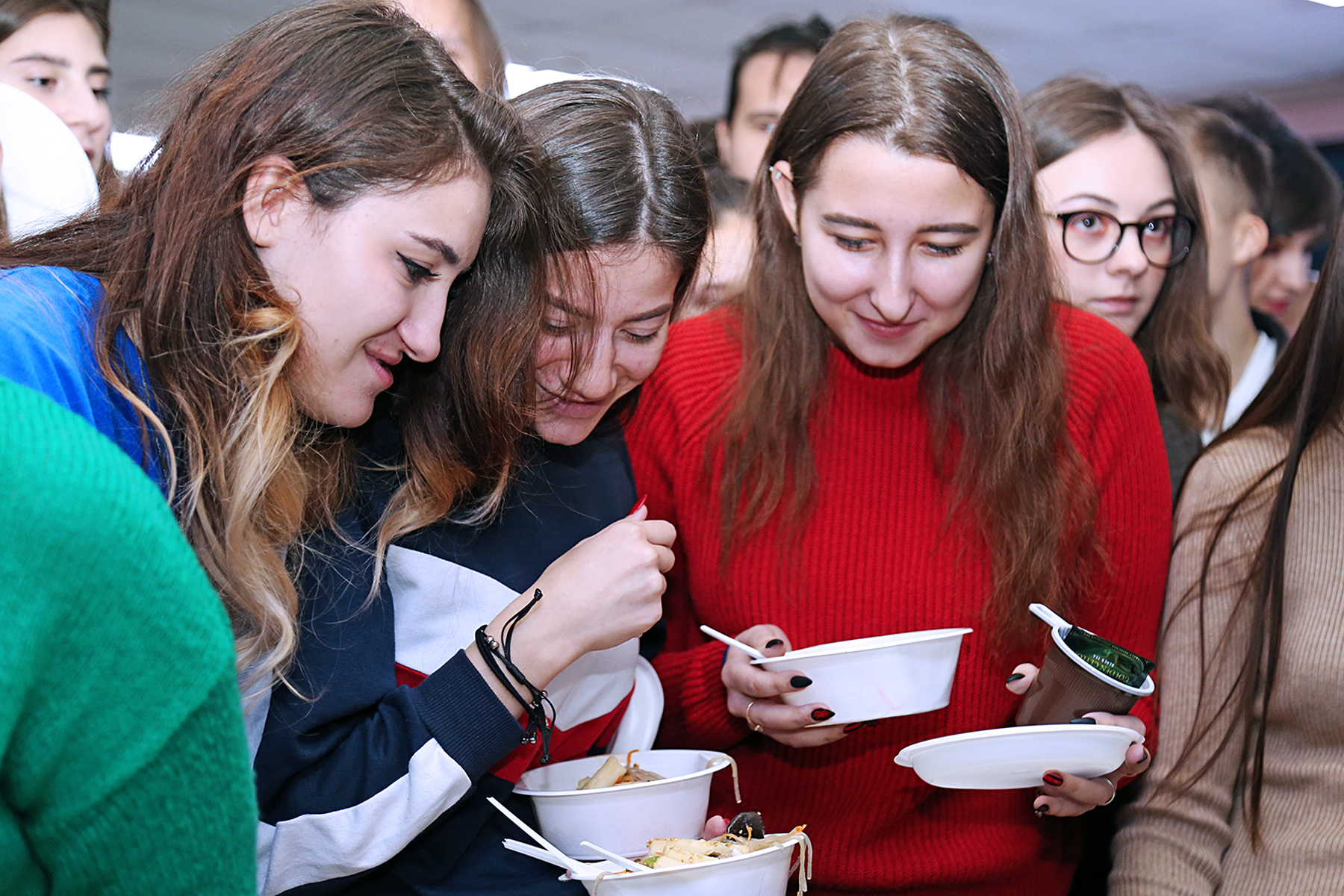 Так как процесс приготовления происходил прямо на глазах у приглашенных гостей: руководства университета, преподавателей и студентов Колледжа сервиса и дизайна, обучающихся по специальности «Поварское и кондитерское дело», и студентов ВГУЭС, обучающихся по направлению «Товароведение», то гости могли не только попробовать экзотические блюда, но и изучить тонкости готовки.