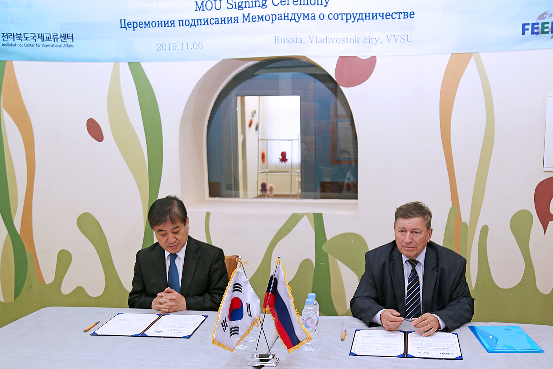 В сентябре во Владивостоке в рамках Восточного экономического форума 2019 прошел Второй Российско-Корейский форум межрегионального сотрудничества, в работе которого принял участие губернатор провинции Северная Чолла и подписал меморандум о сотрудничестве с Администрацией Приморского края. Следующим шагом развития отношений Приморья и корейского региона стало подписание меморандума о взаимопонимании и сотрудничестве между ВГУЭС и Центром международных отношений провинции Северная Чолла. Подписание состоялось 6 ноября в Экохаусе ВГУЭС.
