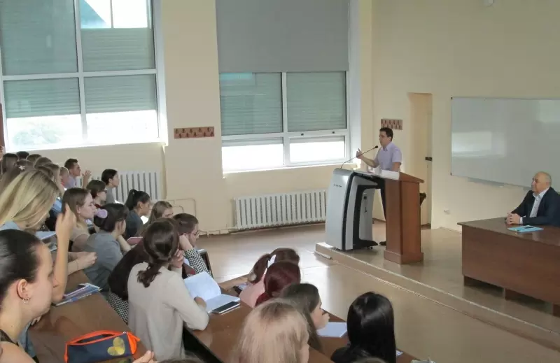 22 сентября 2017 г. состоялась встреча студентов 1-го курса направления «Экономика» с менеджером по работе с проектами подразделения HR (Human Resources) Дальневосточного банка ПАО Сбербанка Слезко Александром Николаевичем. Встреча проходила в формате открытой лекции в рамках проекта «Приглашенный спикер». Лекция затрагивала вопросы формирования новой модели компетенций молодых специалистов в экономической сфере. Гость аудитории говорил о существенных изменениях в бизнес среде, связанных с появлением и развитием инновационных технологий в банковском бизнесе, основанных на больших массивах информации, возникновением «цифровой экономики».