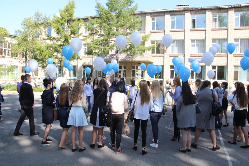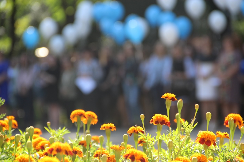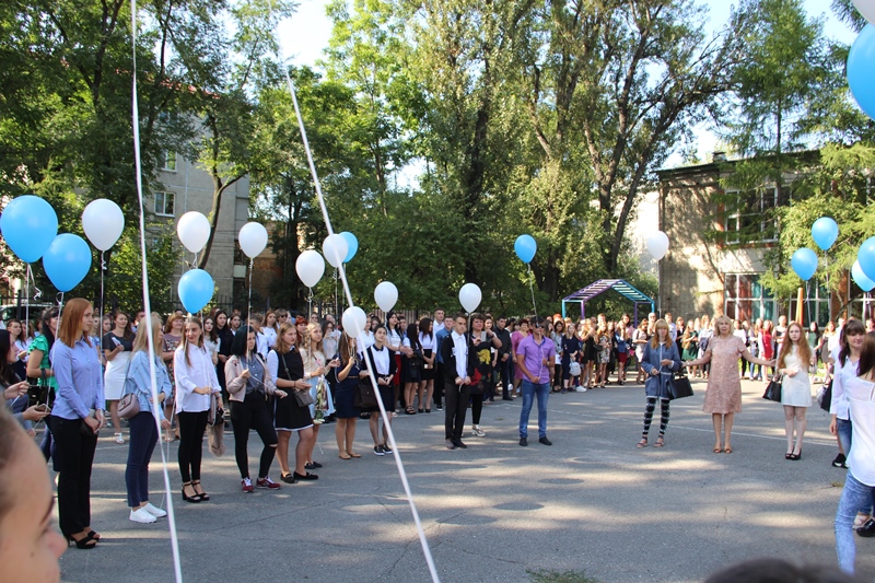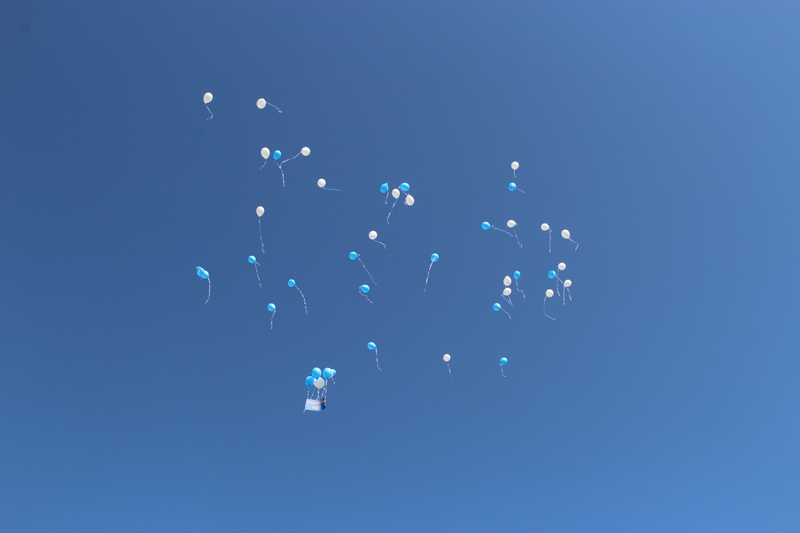 В знак юбилейного учебного года студенты-первокурсники запустили в небо 50 бело-голубых шариков.