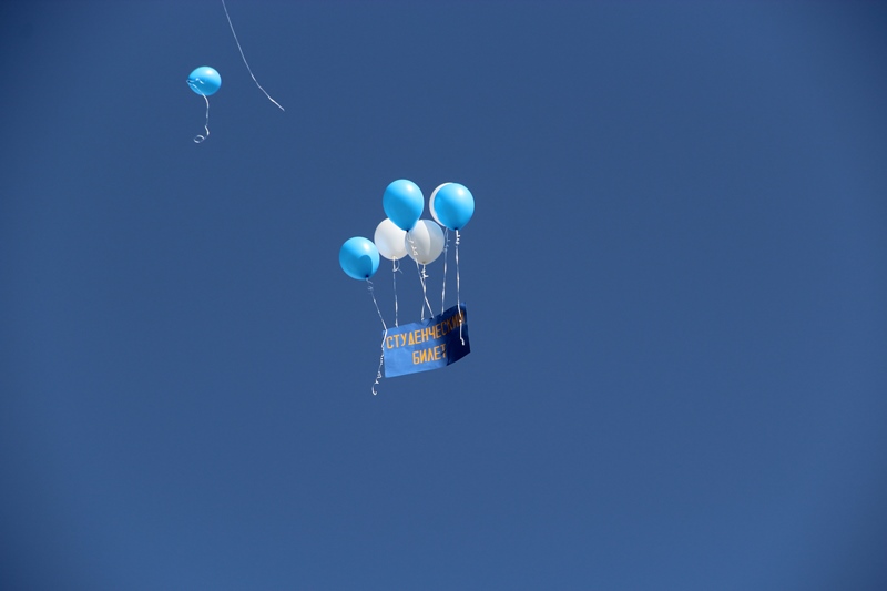 Высоко в небо взлетел студенческий билет, по традиции запущенный студентами первого курса.