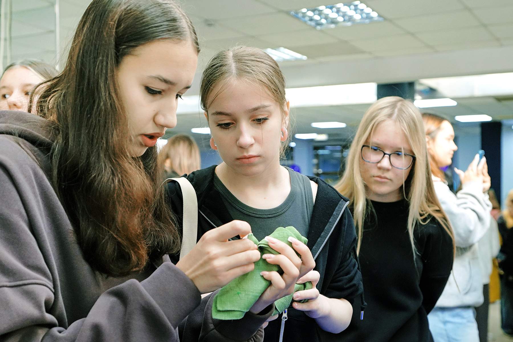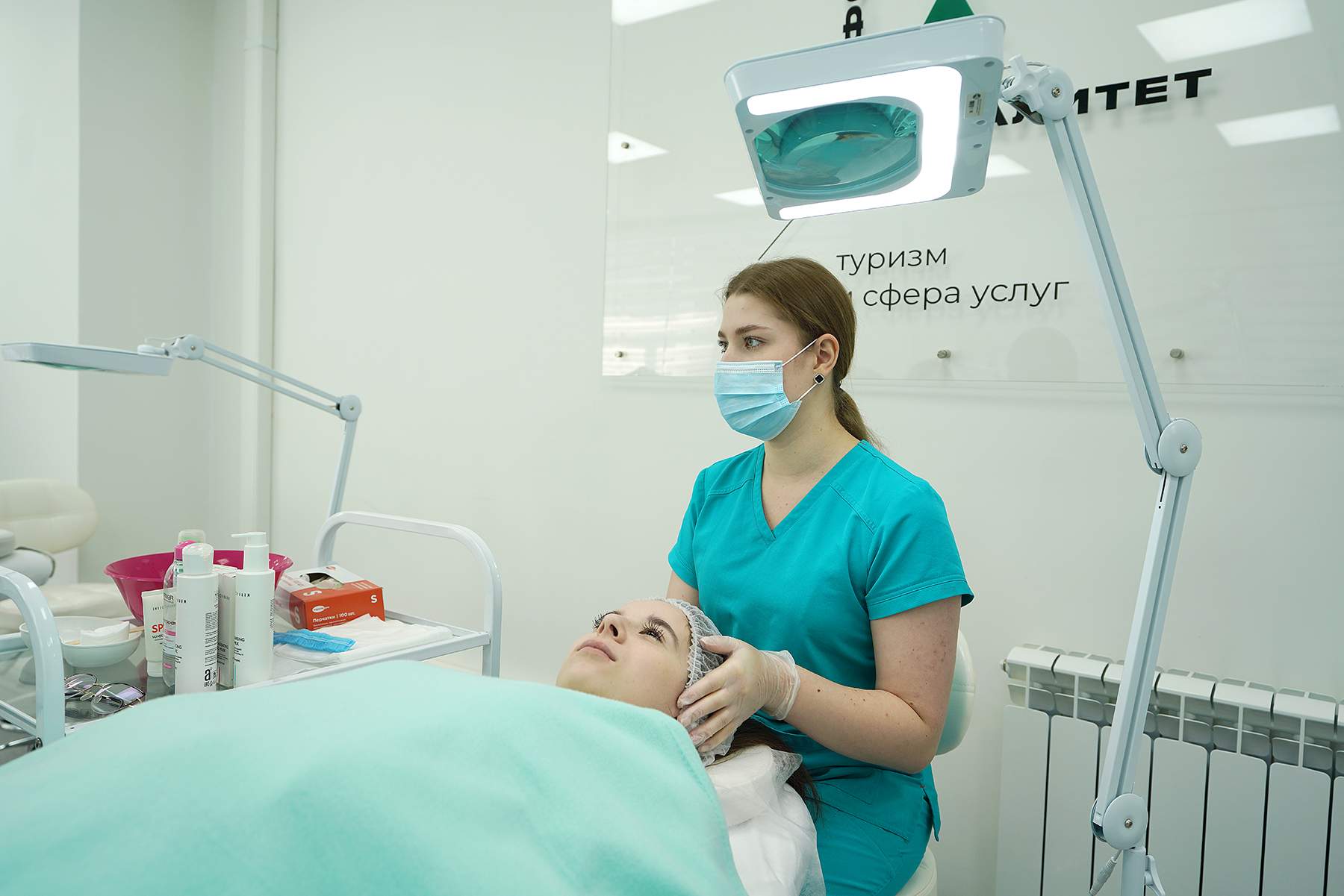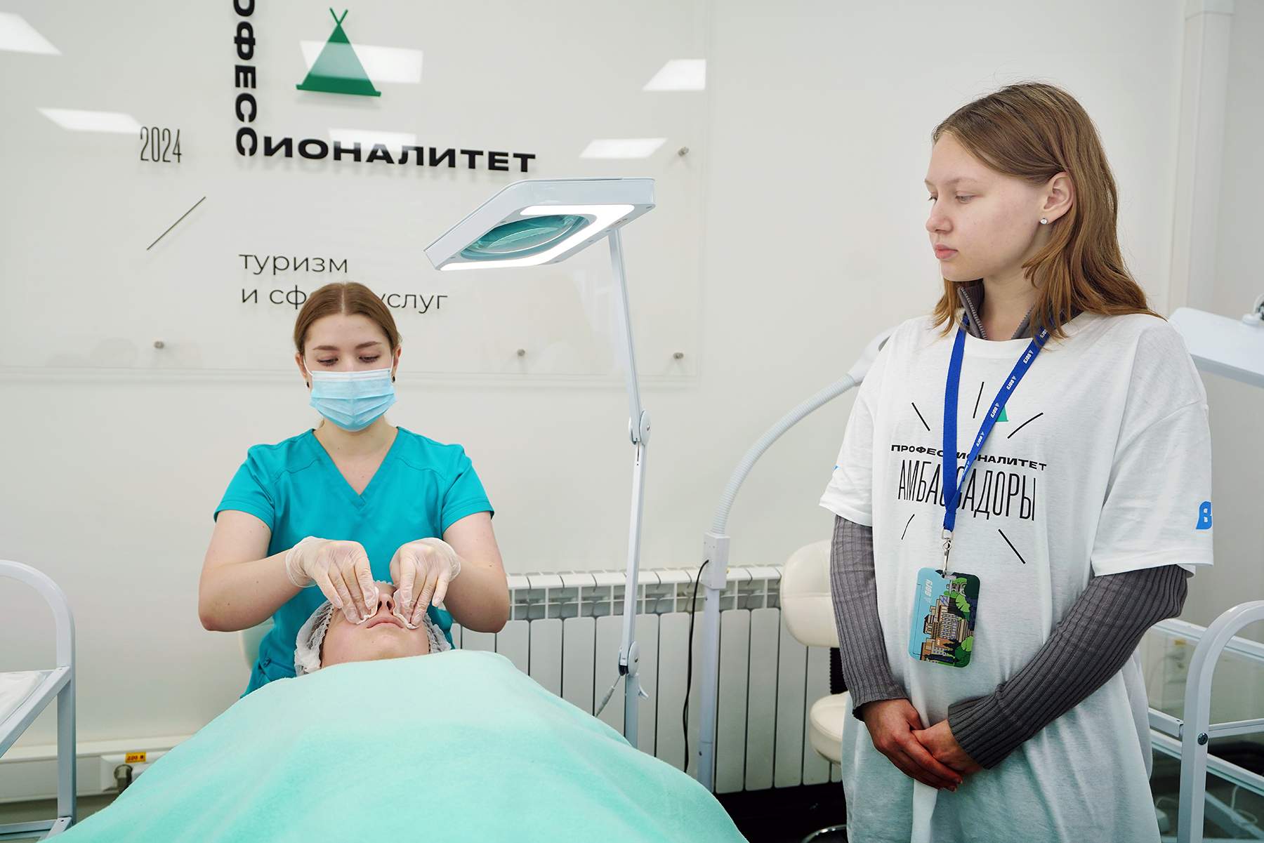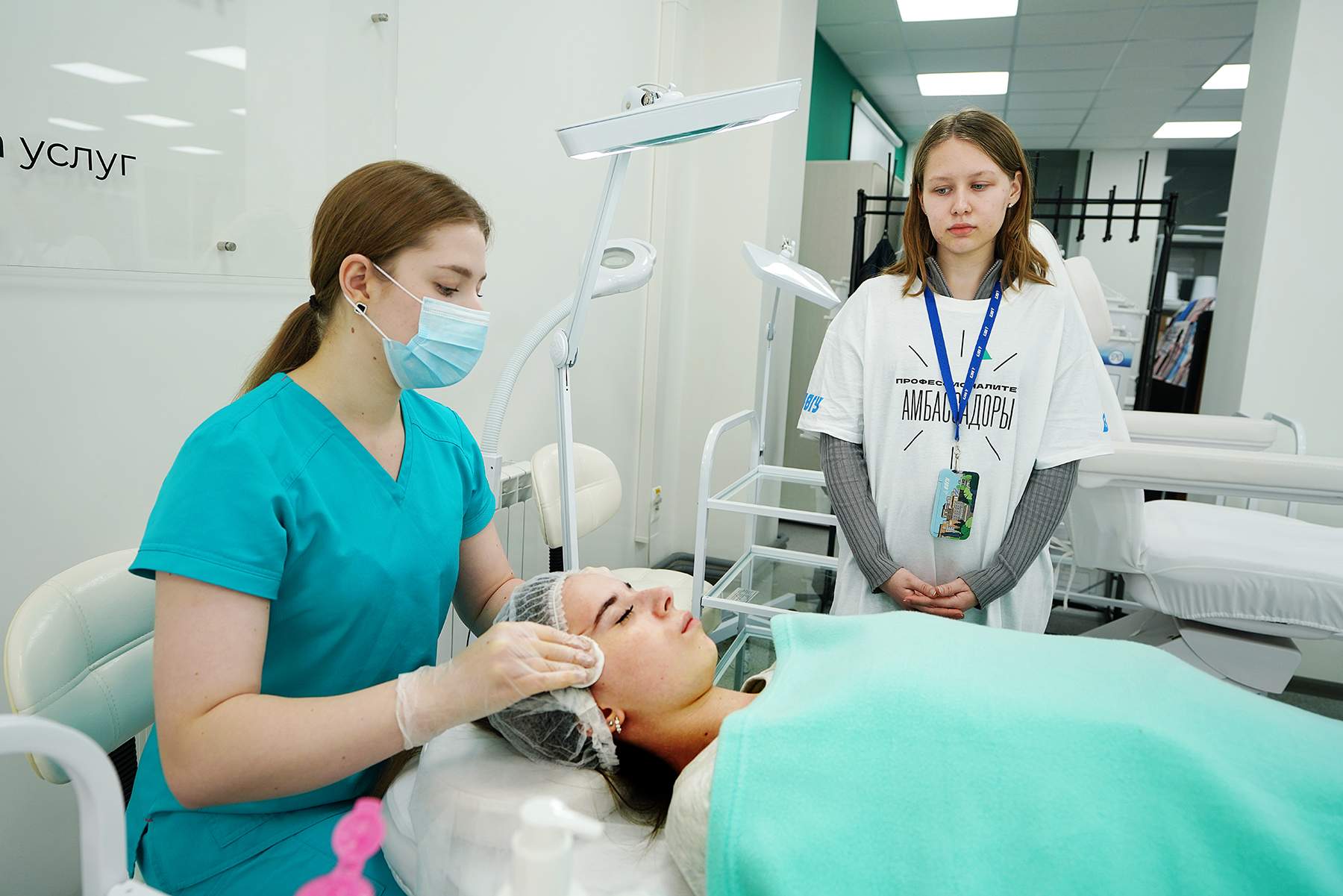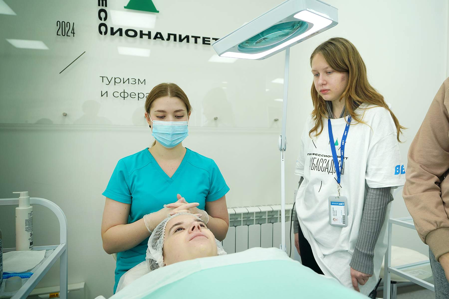 В новой зоне под вид работ «Эстетические и косметические услуги» школьникам провели профессиональную пробу по подбору ухода за кожей лица в зимний период. Показали новое современное оборудование, на котором уже сейчас обучаются студенты кластера «Туризм и сфера услуг», и рассказали про специальность «Технологии индустрии красоты».