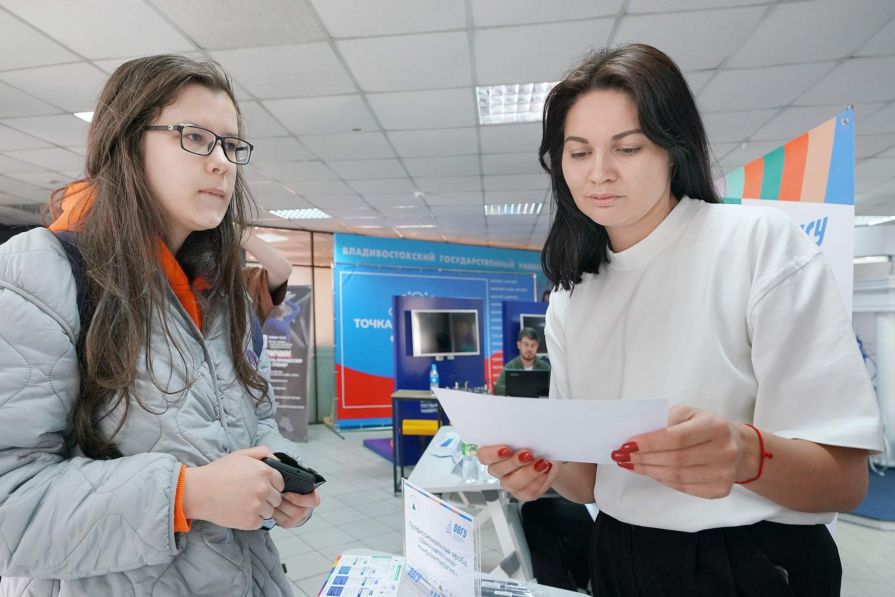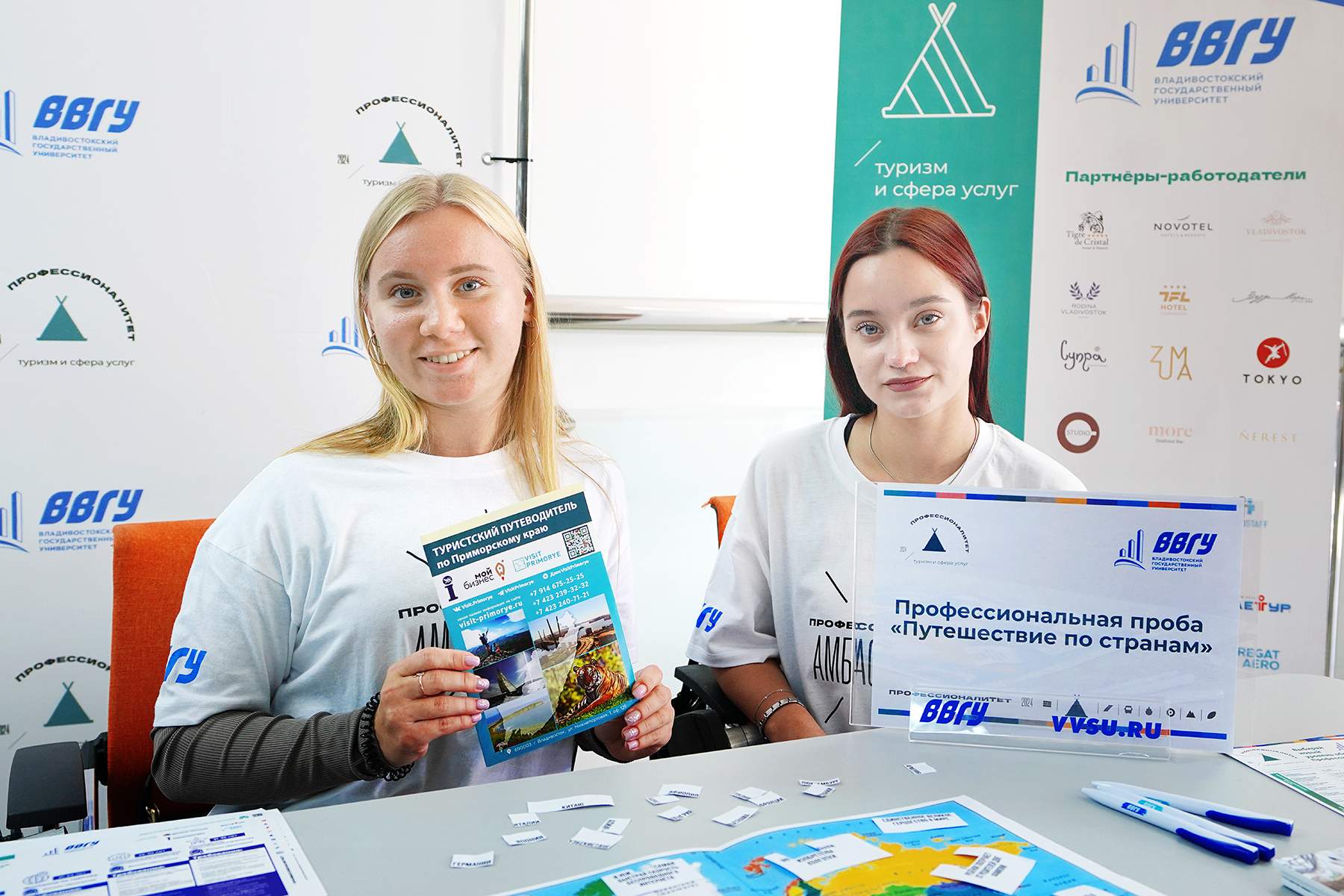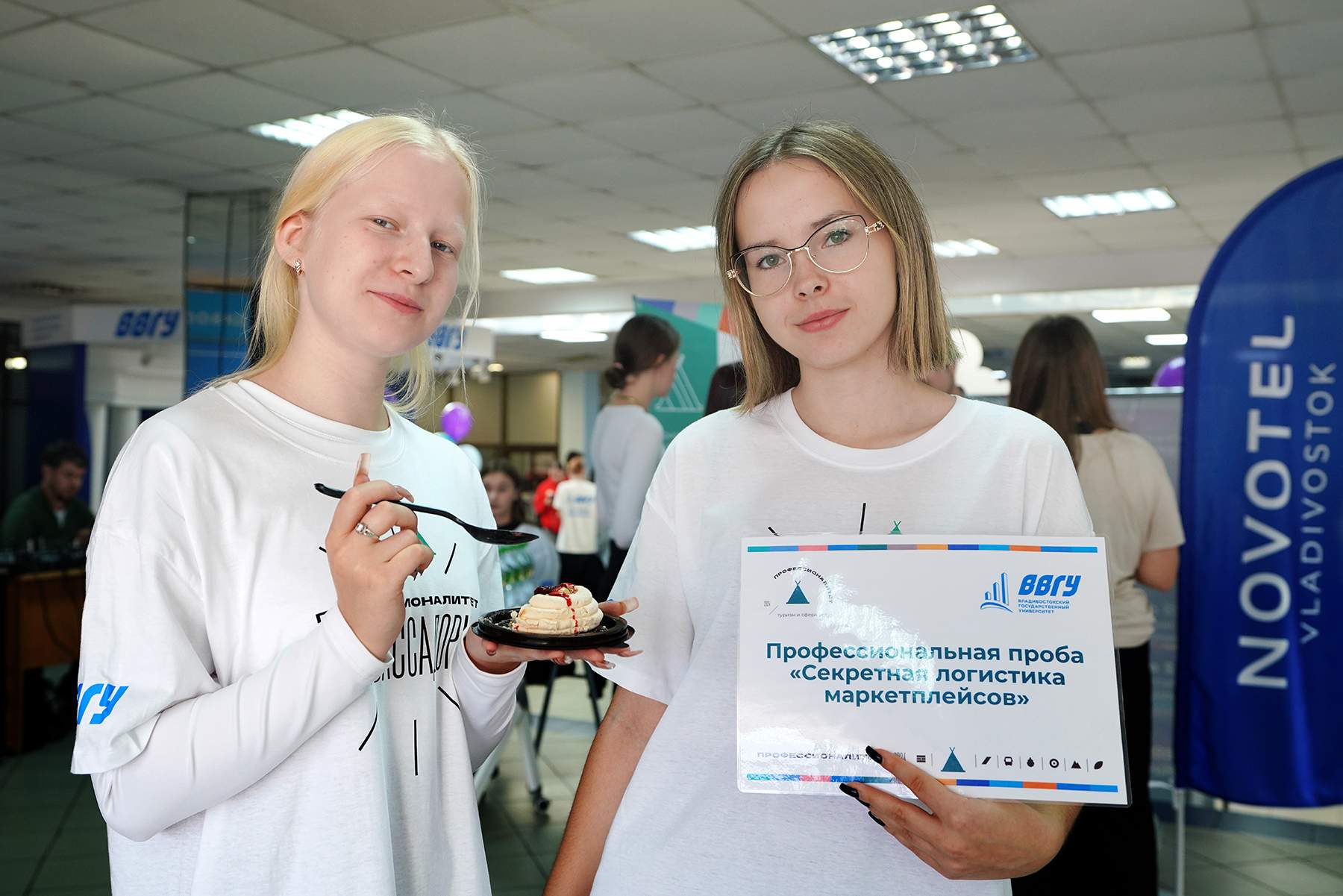 Будущие абитуриенты получили шанс поучаствовать в тренингах по современным техникам продаж и изучить секреты логистики маркетплейсов. Также была предоставлена возможность пройти тест-драйв профессии «Экскурсовод» от Владивостокского бюро путешествий и экскурсий.