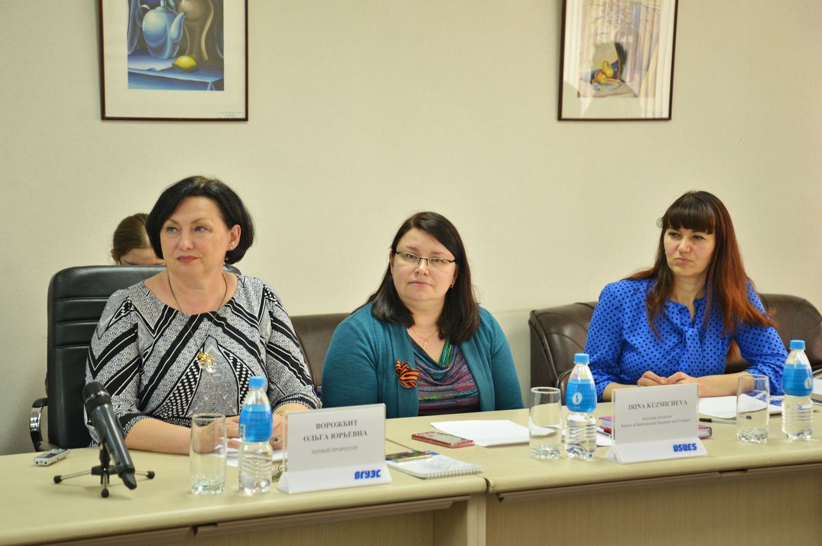 Со стороны ВГУЭС участие во встрече приняли первый проректор ВГУЭС Ольга Ворожбит, доцент Кафедры экономики Ирина Кузьмичёва, директор Департамента научно-исследовательской работы Галина Петрук и начальник Отдела международной академической мобильности Александра Пигинешева. Со стороны Сеульского национального университета науки и технологий спикерами выступили профессор Чун Сехак и декан факультера бизнеса и технологий Гы Ок Лю.