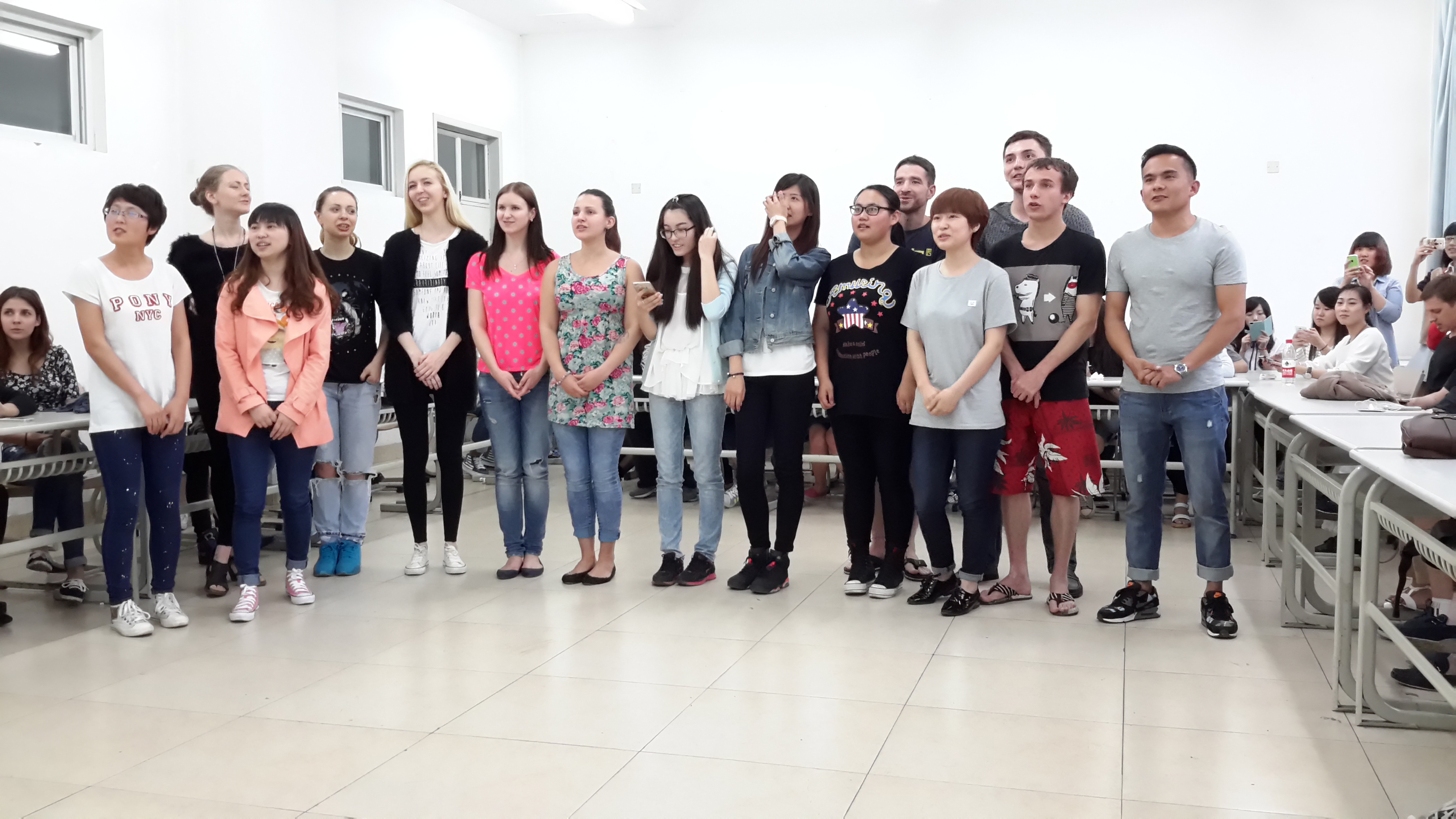 - На третьем курсе я веду аудирование, письменную речь (сочинение) и страноведение (современная Россия). К сожалению, наш любимый предмет – говорение – отсутствует в программе старших курсов, все мои студенты очень по нему скучают, мы, конечно, все равно много разговариваем на всех занятиях, но приходится расставлять приоритеты. На аудировании смотрим новости 1 канала, студенты в курсе того, что происходит в России и в мире, но самые любимые герои новостей у нас – Амур и Тимур; мы внимательно следим за их дружбой. Государственное устройство России, ее внешняя и внутренняя политика, российско-китайские отношения – все это мы подробно рассматриваем на уроках страноведения.