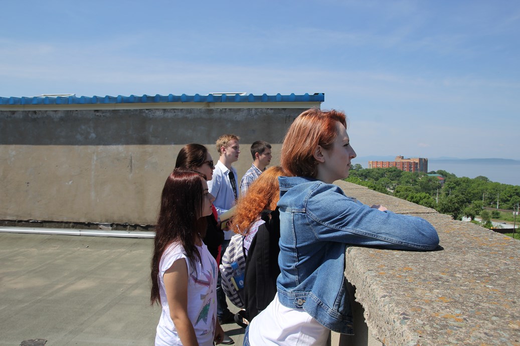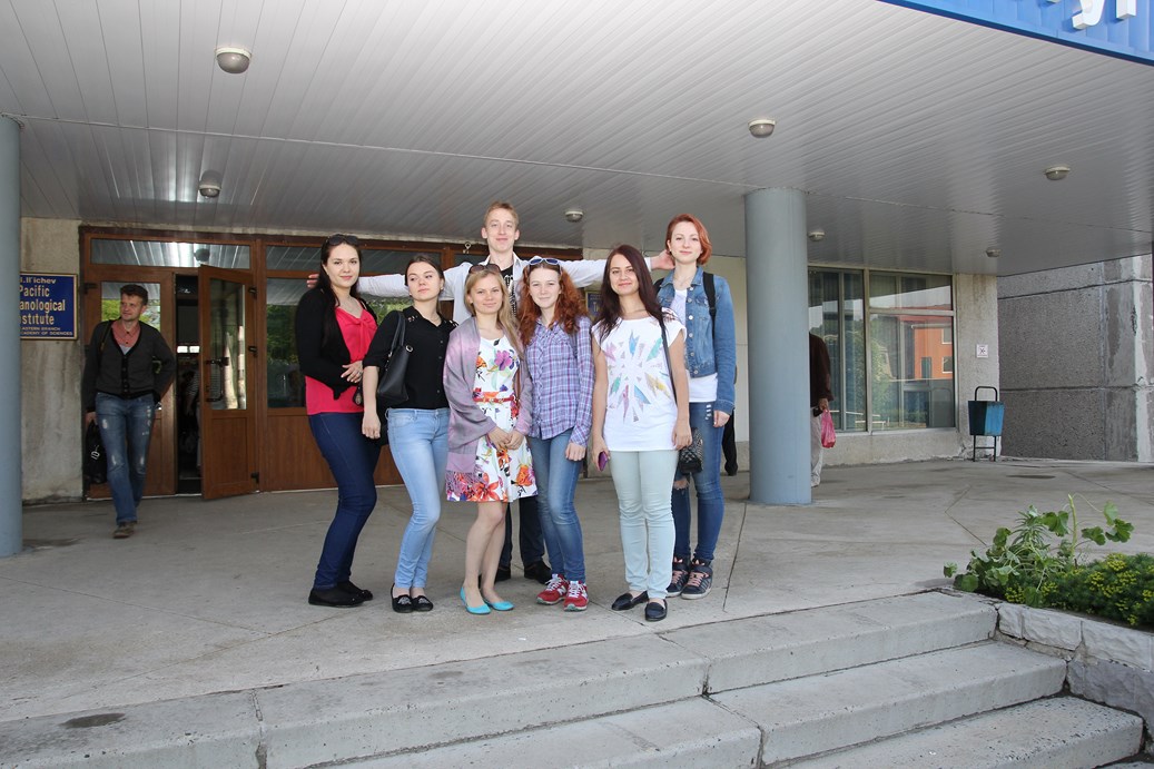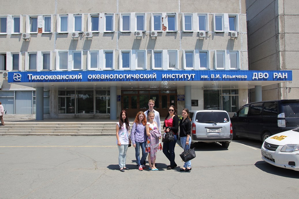 По предложению Ямчука Константина Анатольевича, старшего инженера, 10 июня гр.БЭК-13 вместе с куратором Гривановым Игорем Юрьевичем посетили Тихоокеанский океанологический институт им. В. И Ильичёва ДВО РАН. Основной задачей Океанологического института является комплексное исследование Мирового океана. На территории института студентов встретил Раков Владимир Александрович. Он рассказал об истории института и о деятельности каждого отдела. Институт подразделяется на: отдел геологии и геофизики океана, отдел информационных технологий, отдел геохимии и экологии океана, отдел спутниковой океанологии, отдел биохимических технологий, отдел технических средств исследования океана, отдел физики океана и атмосферы, отдел акустики океана, и отдел общей океанологии. В сопровождении Ямчука Константина Анатольевича студенты посетили каждый из отделов и познакомились с сотрудниками института, были ознакомлены с оборудованиями и материалами работы в сфере океанологии. Студентам-экологам понравилась экскурсия по Тихоокеанскому океанологическому институту, и некоторые задумались о прохождении профессиональной практики в этом институте.