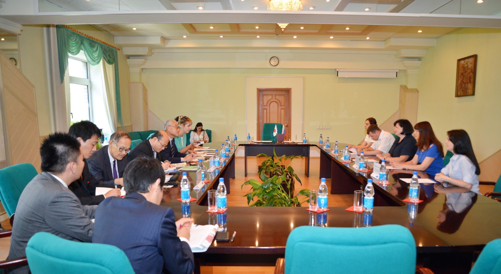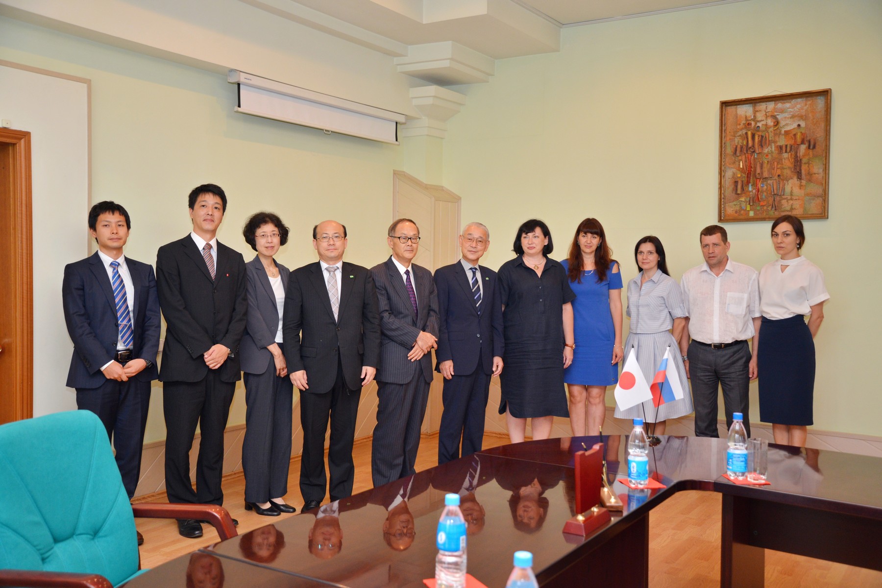 Делегацию японских гостей из партнерского университета в составе директора Центра международного сотрудничества, профессора кафедры менеджмента Китадзаки Хироси, начальника отдела по связям с общественностью, главного инспектора планирования Ямамото Синъити, преподавателя русского языка Ямамото Тидзуко возглавил заместитель директора Университета окружающей среды Тоттори Кавахара Митихико.