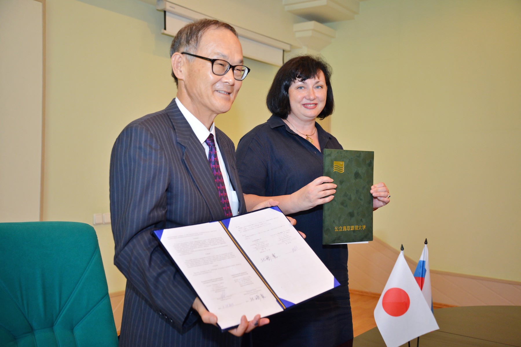 4 августа во ВГУЭС Протокол о намерениях между университетами подписали первый проректор ВГУЭС Ольга Ворожбит и заместитель директора Университета окружающей среды Тоттори (Япония) Кавахара Митихико.