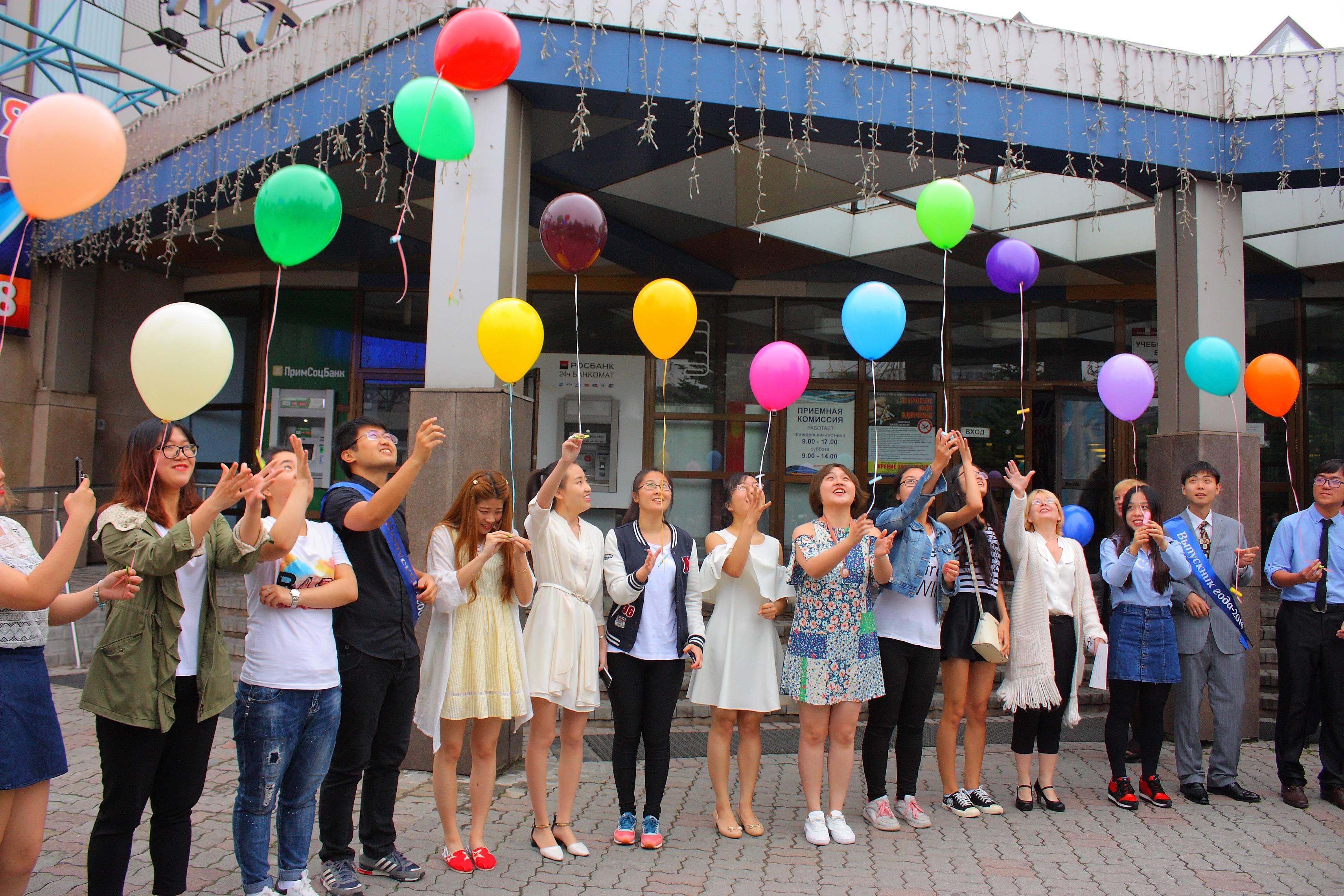 В завершение церемонии выпускники написали на листочках свои заветные желания и потом, выйдя на крыльцо университета, отправили свои мечты на воздушных шарах в небо. Конечно, жизненные планы у всех разные, но одна общая для всех выпускников мечта уже сбылась: они получили бакалаврские дипломы ВГУЭС, а значит – уверенность в своих будущих профессиональных успехах.
