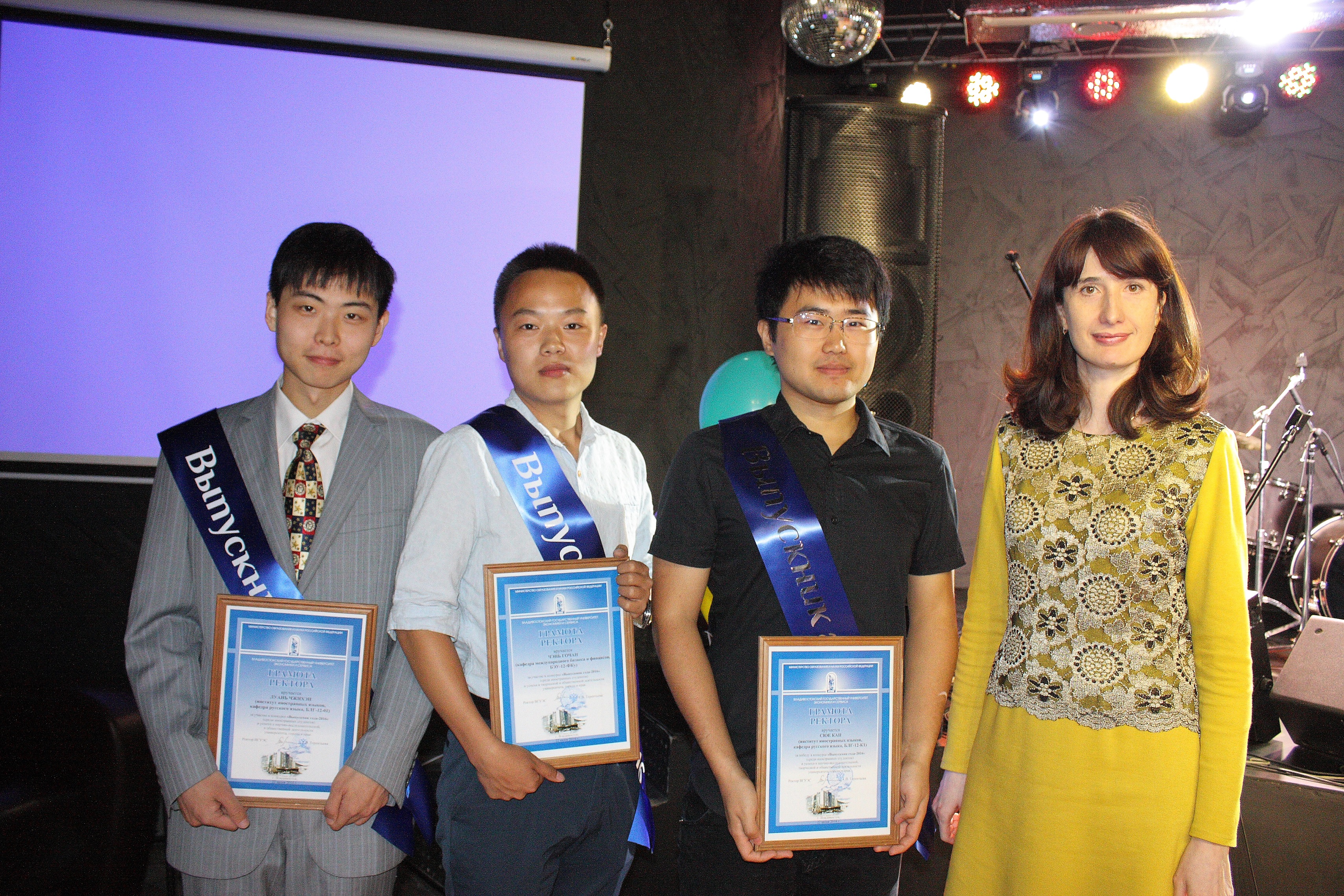 Директор института иностранных языков Ю.О.Коновалова объявила имена лучших иностранных выпускников этого года. Ими стали лингвисты Сюе Кан и Луань Чжихэн, а также экономист Чэнь Гочан.