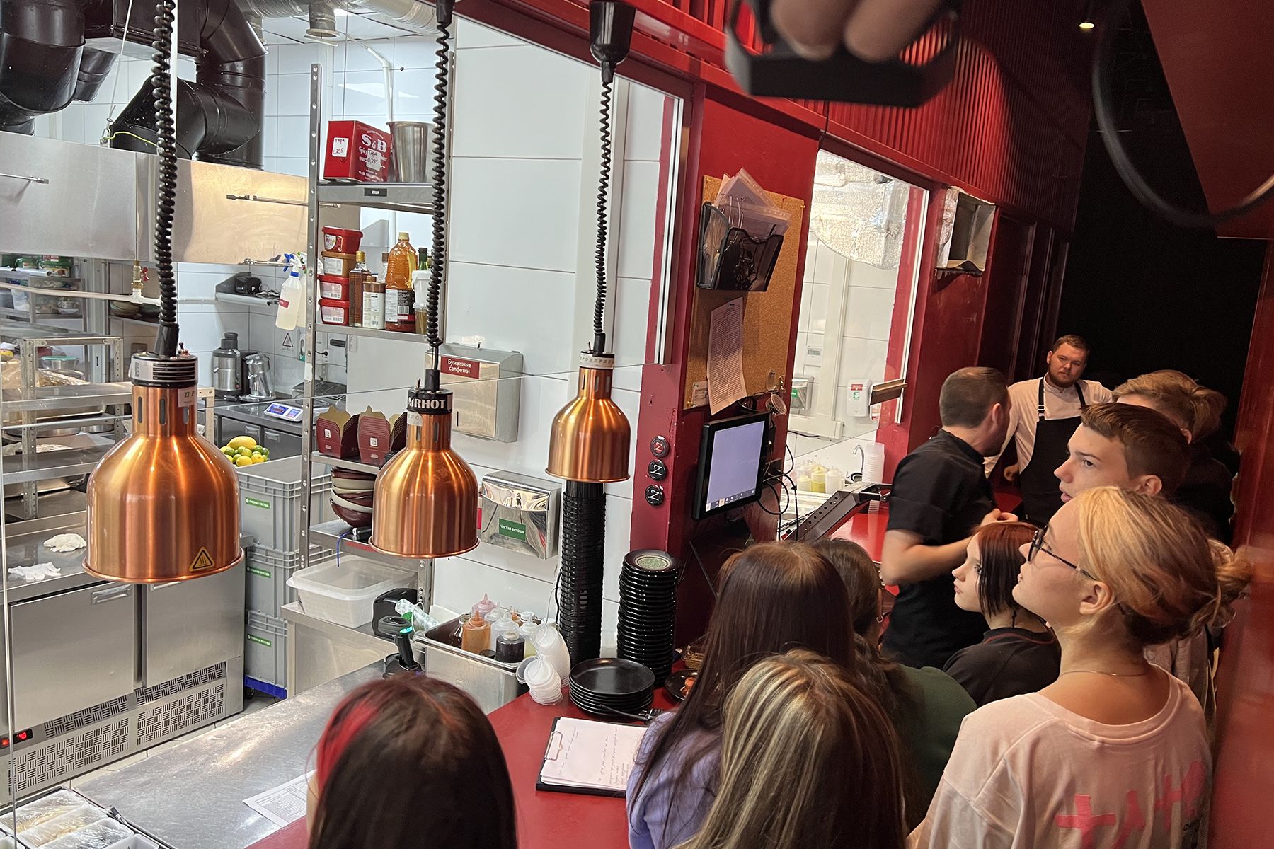 В ресторане паназиатской кухни «ZUMA», директор Мария Иноземцева показала, как устроен процесс приготовления блюд, как происходит процесс обслуживания клиентов. Шеф-кондитер ООО «Пять вкусов» Роза Захорян рассказала школьникам о том, чему можно научиться на практике в одном из лучших ресторанов Владивостока: