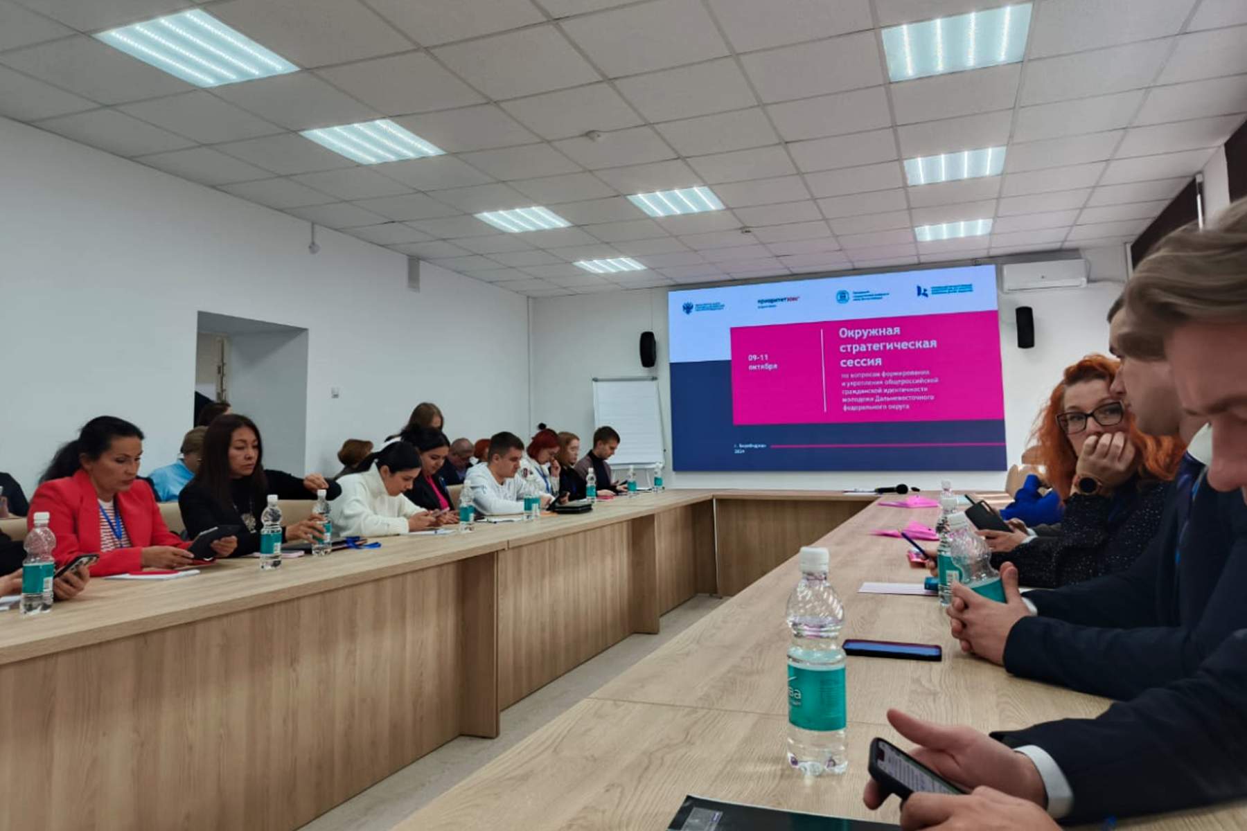Стратсессия собрала участников из более десяти регионов России. Внесли свой вклад в обсуждение важных для развития Дальнего Востока вопросов представители государственных органов, ведущие ученые, педагоги и сотрудники координационных центров.
