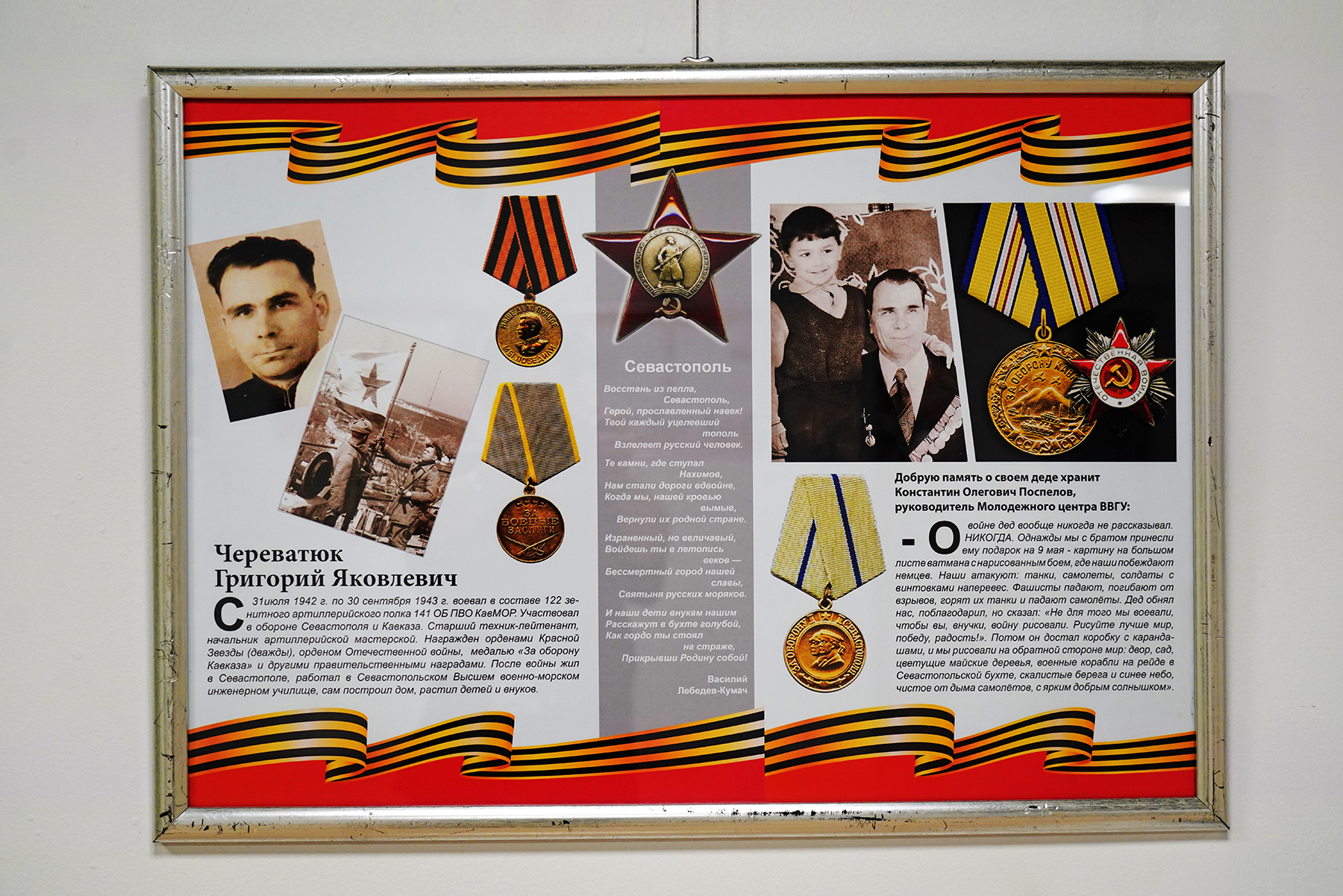 «Поклонимся великим тем годам…» — это не просто экспозиция. Это живая память о подвиге, который совершили наши деды и прадеды, рассказ о том, как наш город жил, боролся и встречал долгожданную Победу. Здесь собраны истории ветеранов университета, воспоминания родных наших преподавателей и сотрудников. Эта выставка напоминает: война коснулась каждой семьи.