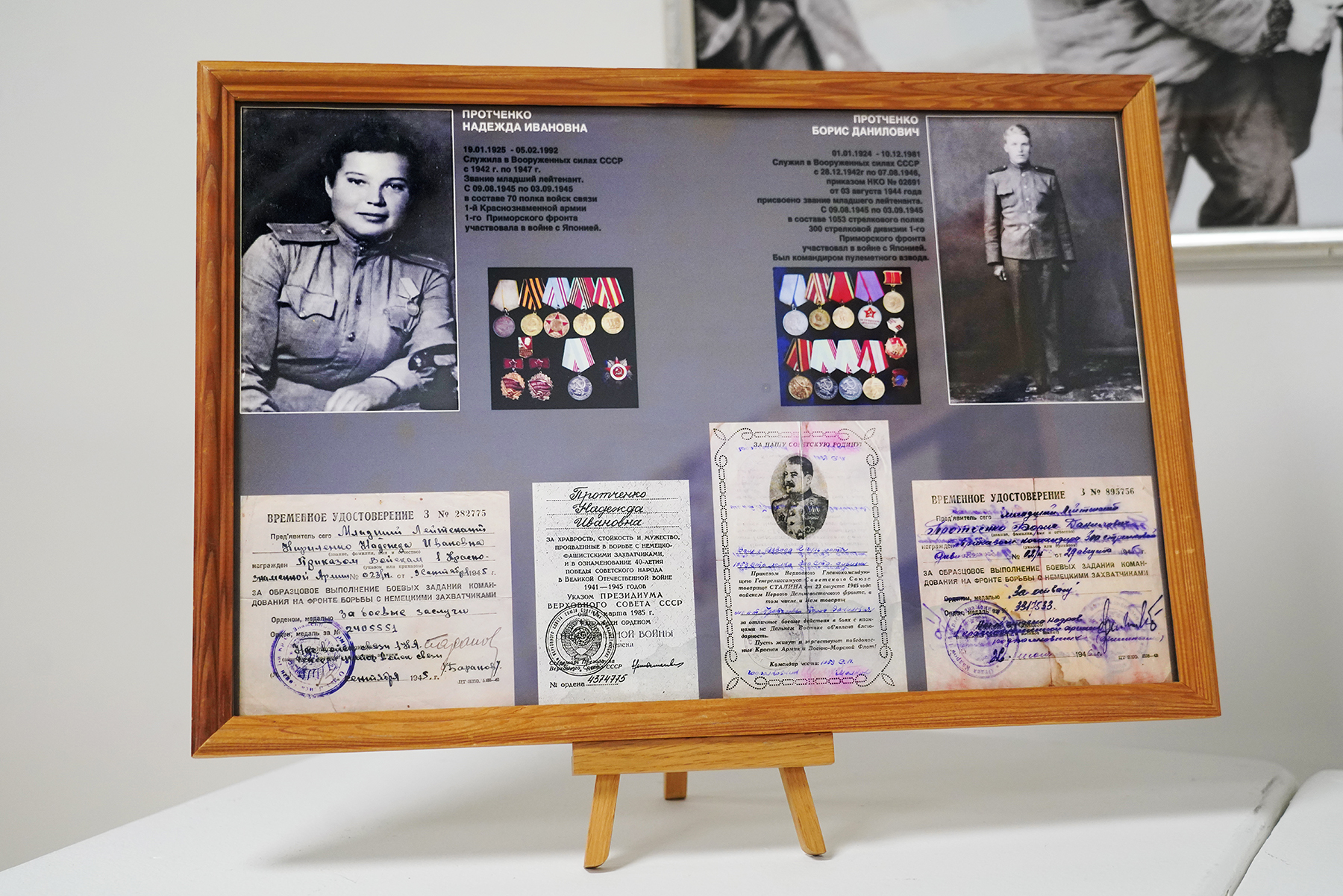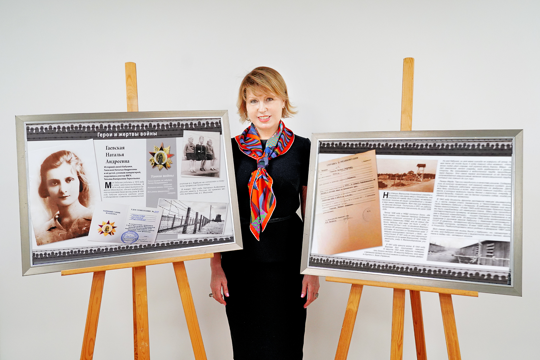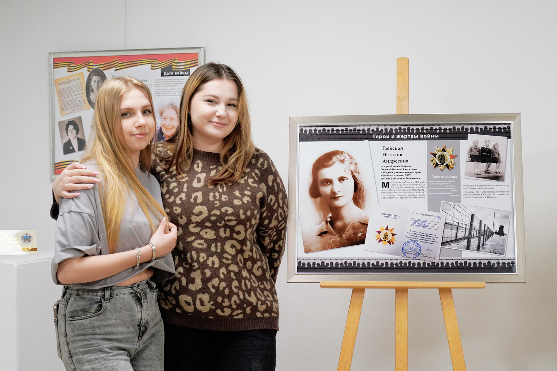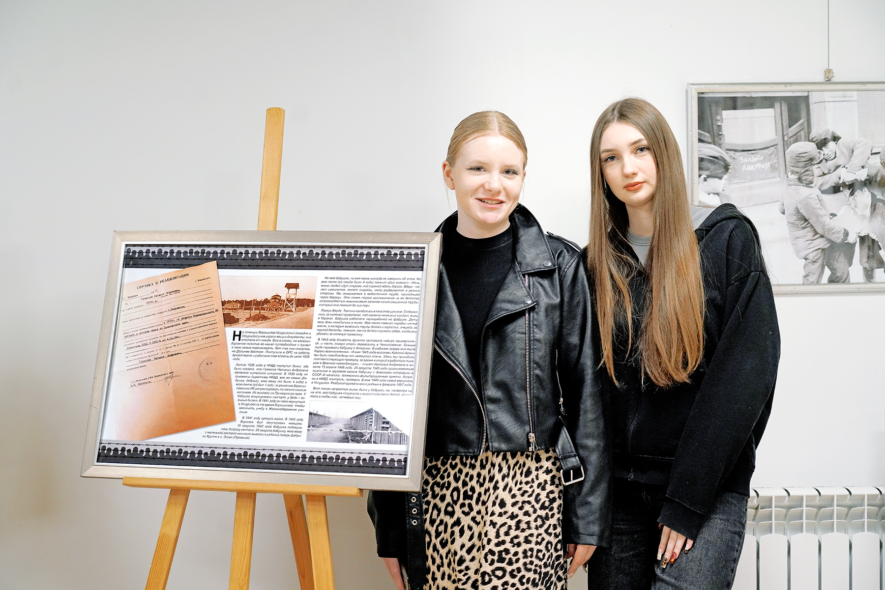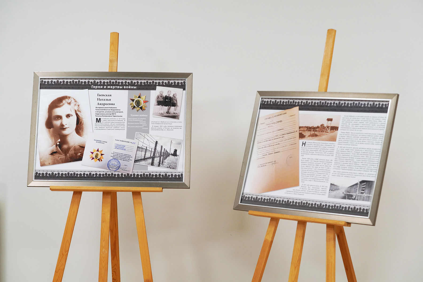 «Здесь есть история, которая особенно близка мне. Моя бабушка, Гаевская Наталья Андреевна, в 29 лет оказалась в аду нацистского концлагеря в Эссене. С двумя малыми детьми — моей матерью и тётей — она прошла через три года унижений, голода и страха. Но даже в кромешной тьме она не сломалась. В мае 1946-го семья вернулась в Уссурийск, а в 1997 году они были реабилитированы. Бабушка вырастила детей, подарила жизнь нам, внукам, и научила главному: даже в испытаниях нельзя терять любовь, веру и достоинство».
