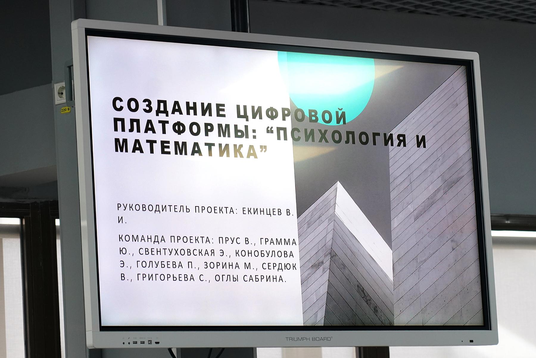 Так, одна из команд Института права представила проект «Математика в психологии». Куратор проекта – доцент кафедры общей и юридической психологии Владислав Екинцев. Студенты планируют разработать тематическую цифровую платформу. Её цель – популяризация точных наук и привлечение абитуриентов к поступлению в университет.