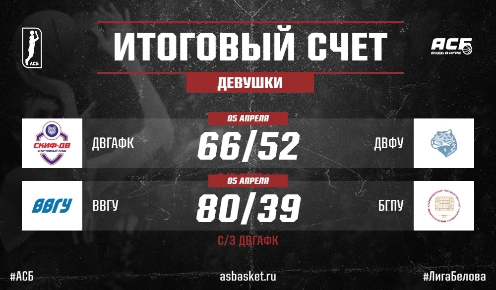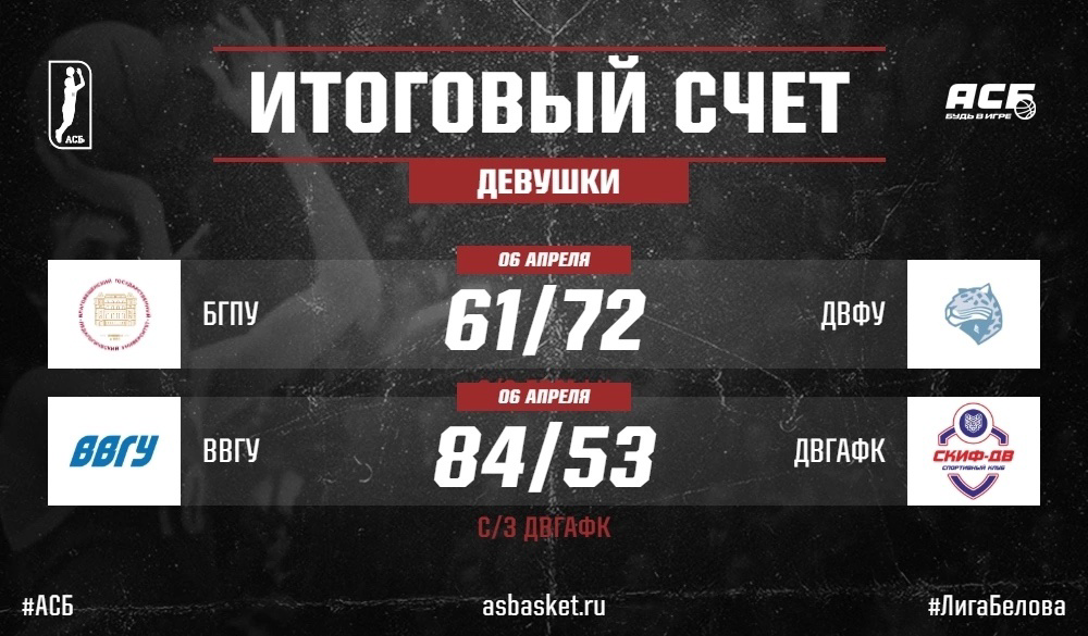 В борьбе за путёвку в Санкт-Петербург студентки ВВГУ одержали две разгромные победы: над БГПУ (Благовещенский государственный педагогический университет) – 80:39 и ДВГАФК (Дальневосточная государственная академия физической культуры) – 84:53.