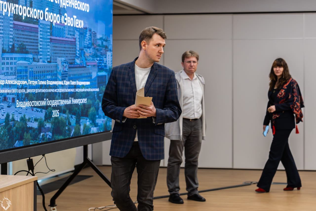На конкурсе команда ВВГУ презентовала студенческое конструкторское бюро «ЭвоТех». Это научное сообщество, которое будет заниматься разработкой, проектированием и внедрением инновационных инженерных решений.