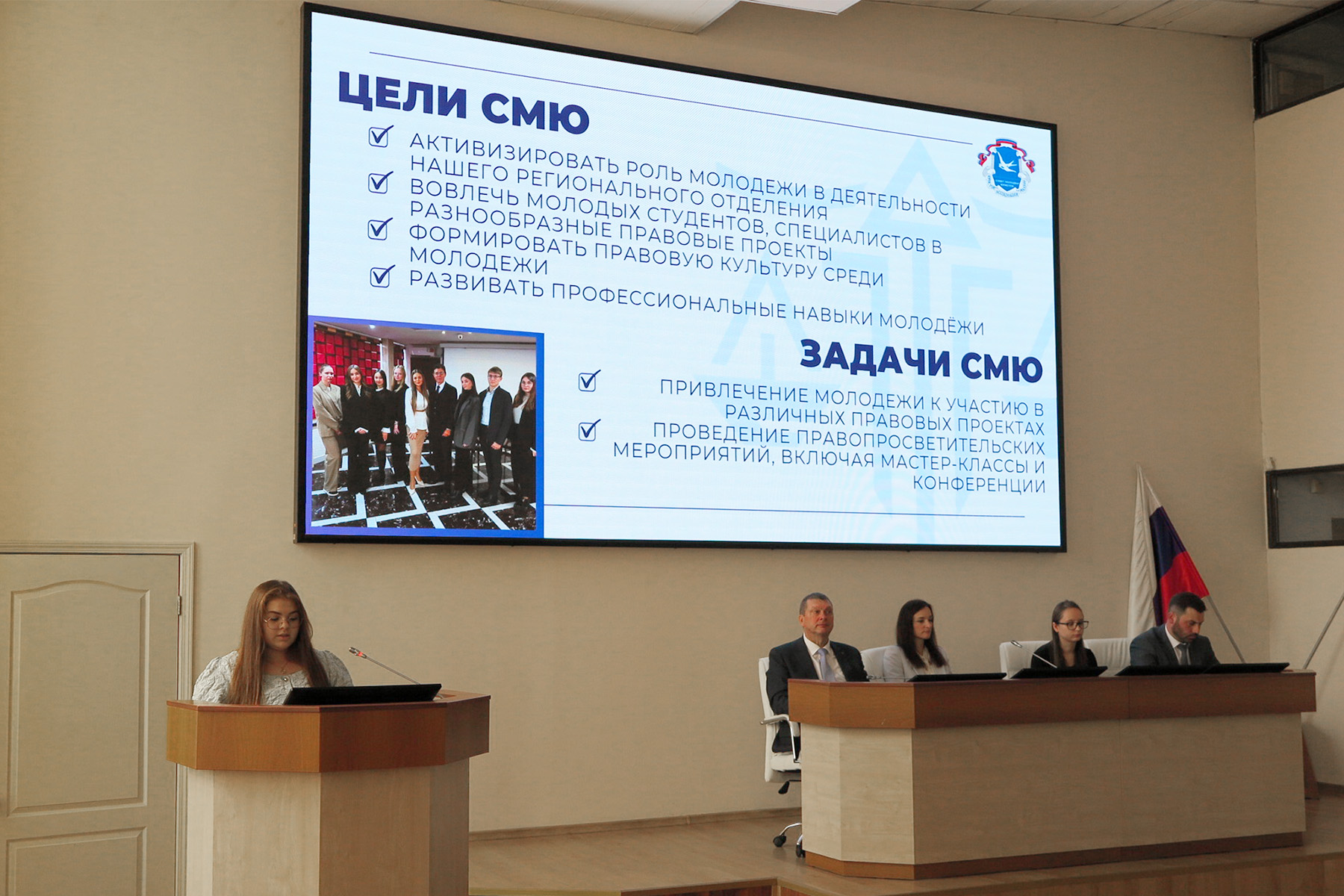 Марине Арменаковна Меликян затронула работу Совета молодых юристов в Приморском региональном отделении. Рассказала слушателям о возникновении и составе Совета молодых юристов, о задачах объединения, привела реализованные проекты – «Школу права», правовую игру «Приморская Фемида», а также рассказала о будущих проектах Совета молодых юристов.