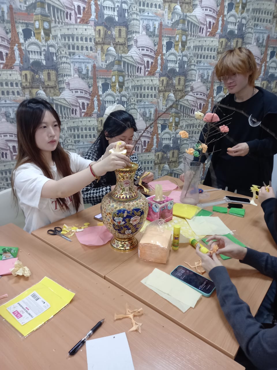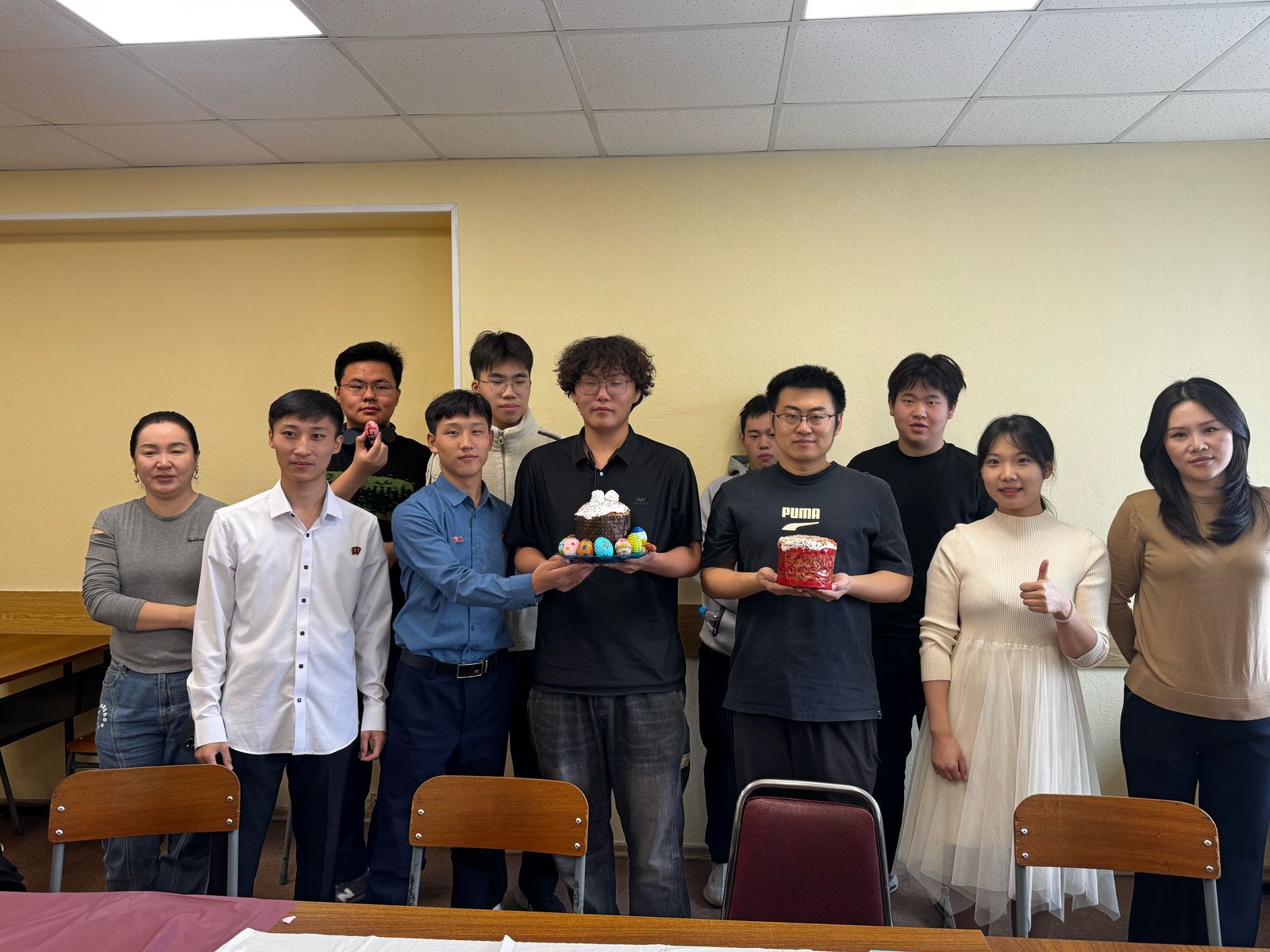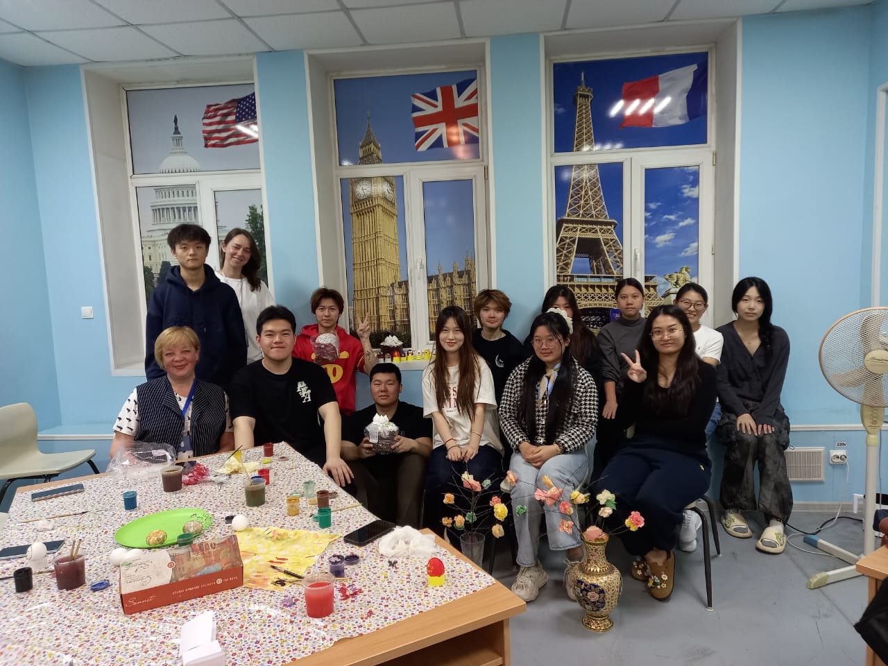 Преподаватели русского языка Светлана Карякина, Марина Троховцева, Инна Ишмурзина, Валерия Петоян и Ольга Никифорова провели мастер-класс с погружением в русскую культуру для иностранных слушателей из Китая, Лаоса и КНДР. Студенты не только узнали о традициях праздника, но и самостоятельно расписали яйца, украсили ветки деревьев бумажными цветами.