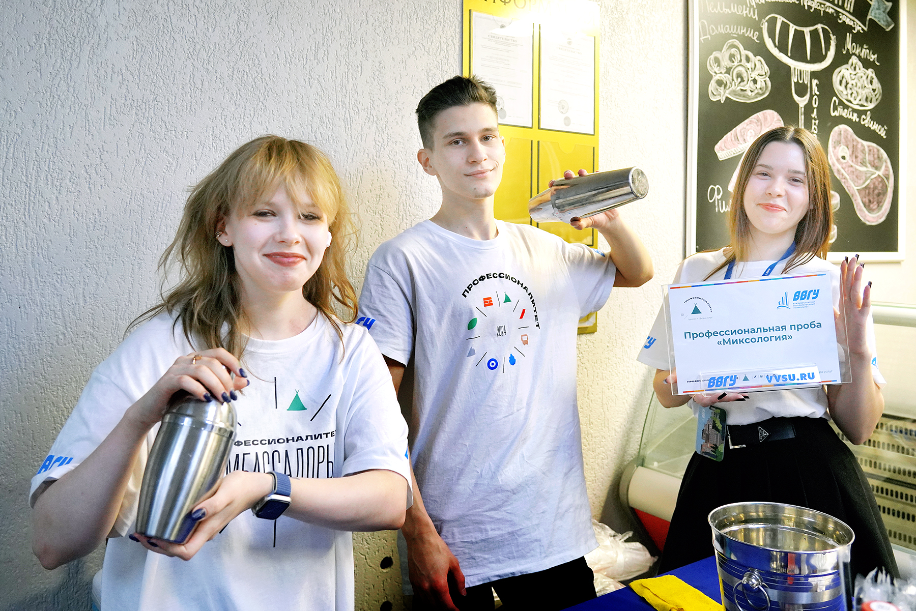 Все желающие освоить навыки барного дела поучаствовали в профессиональной пробе «Миксология», где узнали много полезной информации об основных техниках смешивания коктейлей, сочетании ингредиентов и приготовили свои авторские коктейли, познакомившись с профессией «Бармен».