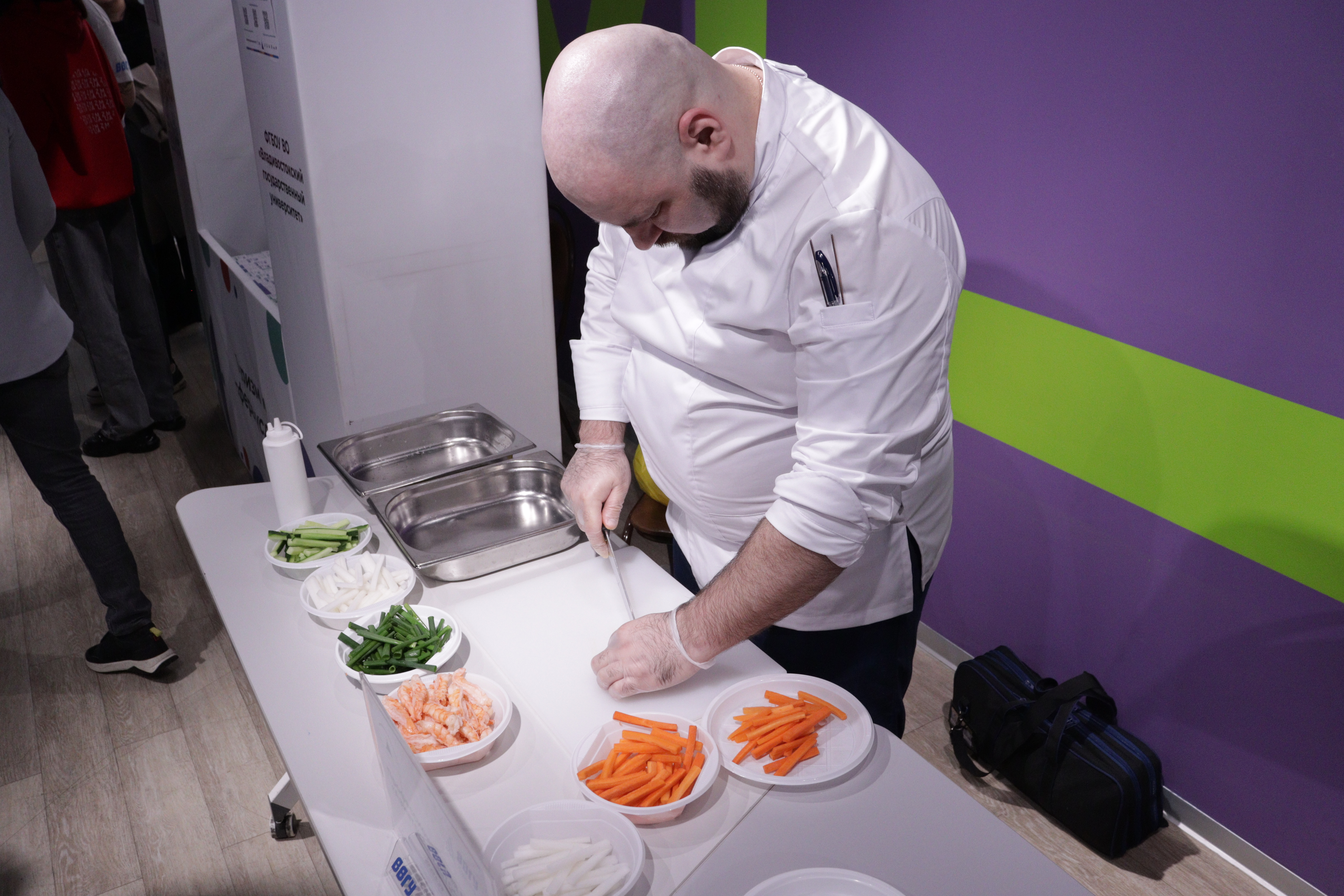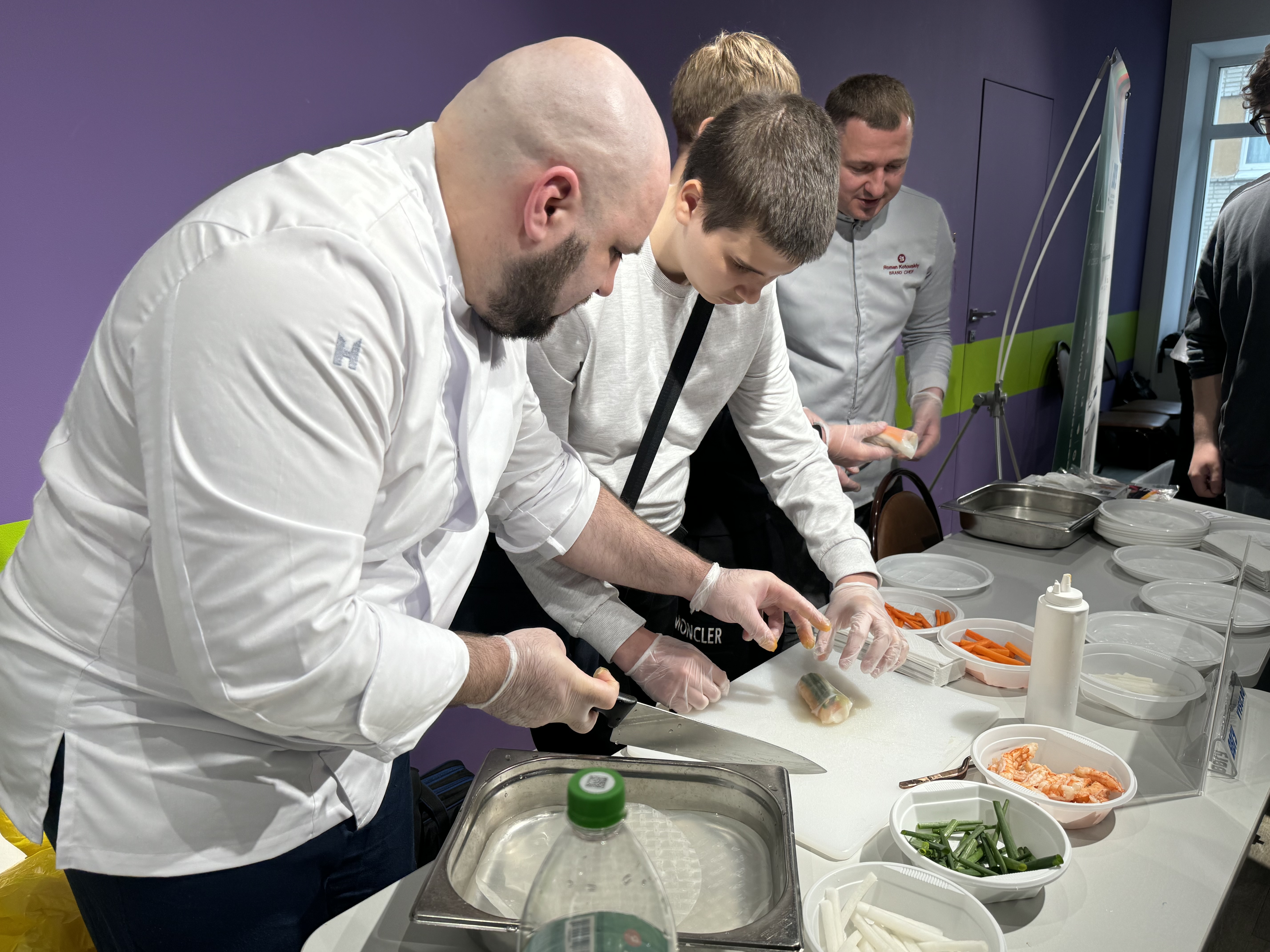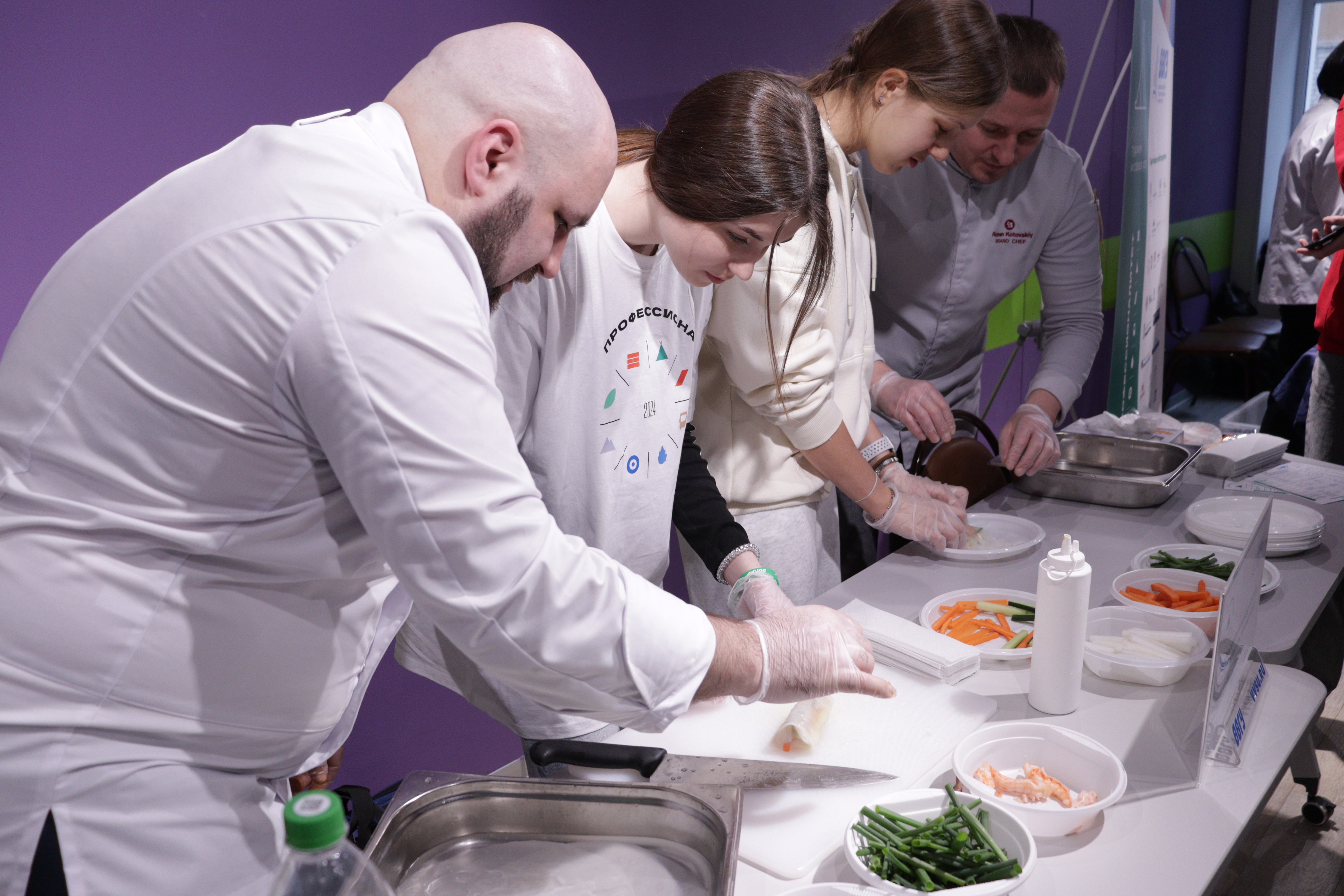 Паназиатский ресторан «Zuma» удивил школьников разнообразием азиатских блюд. Партнёр-работодатель помог школьникам освоить навыки по приготовлению спринг-роллов, вдохновив школьников на профессиональное обучение по специальности «Поварское и кондитерское дело».