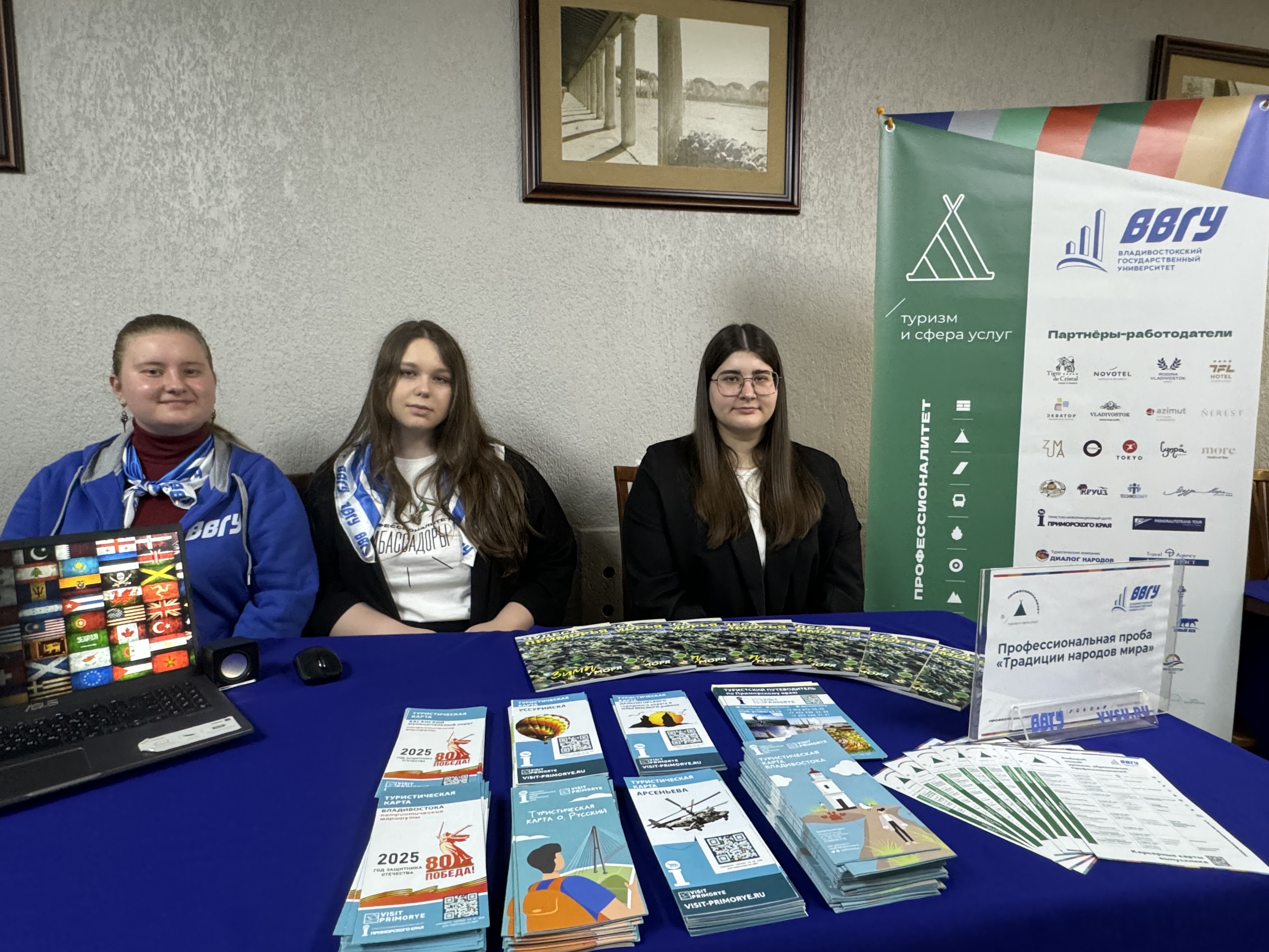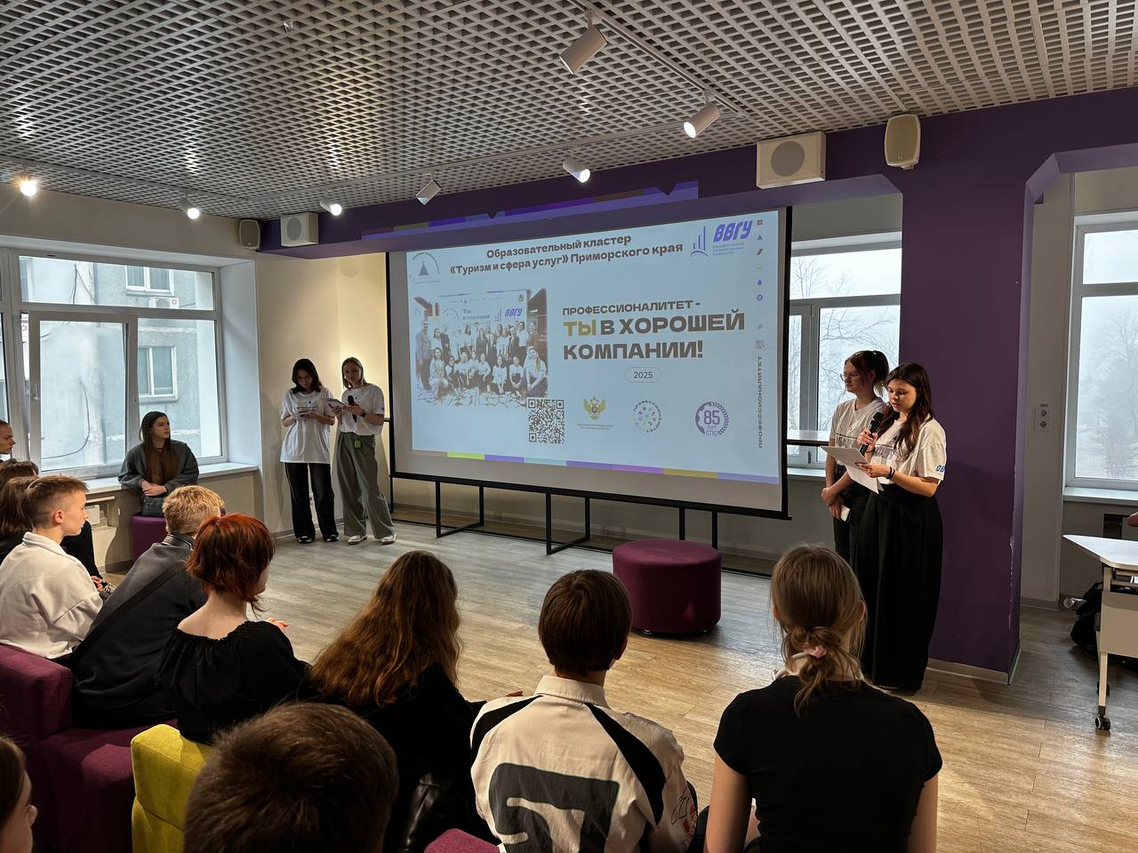 Во Владивостокском государственном университете – базовой организации образовательного кластера «Туризм и сфера услуг» Приморского края прошёл Единый день открытых дверей федерального проекта «Профессионалитет», приуроченный к 85-летию среднего профессионального образования.