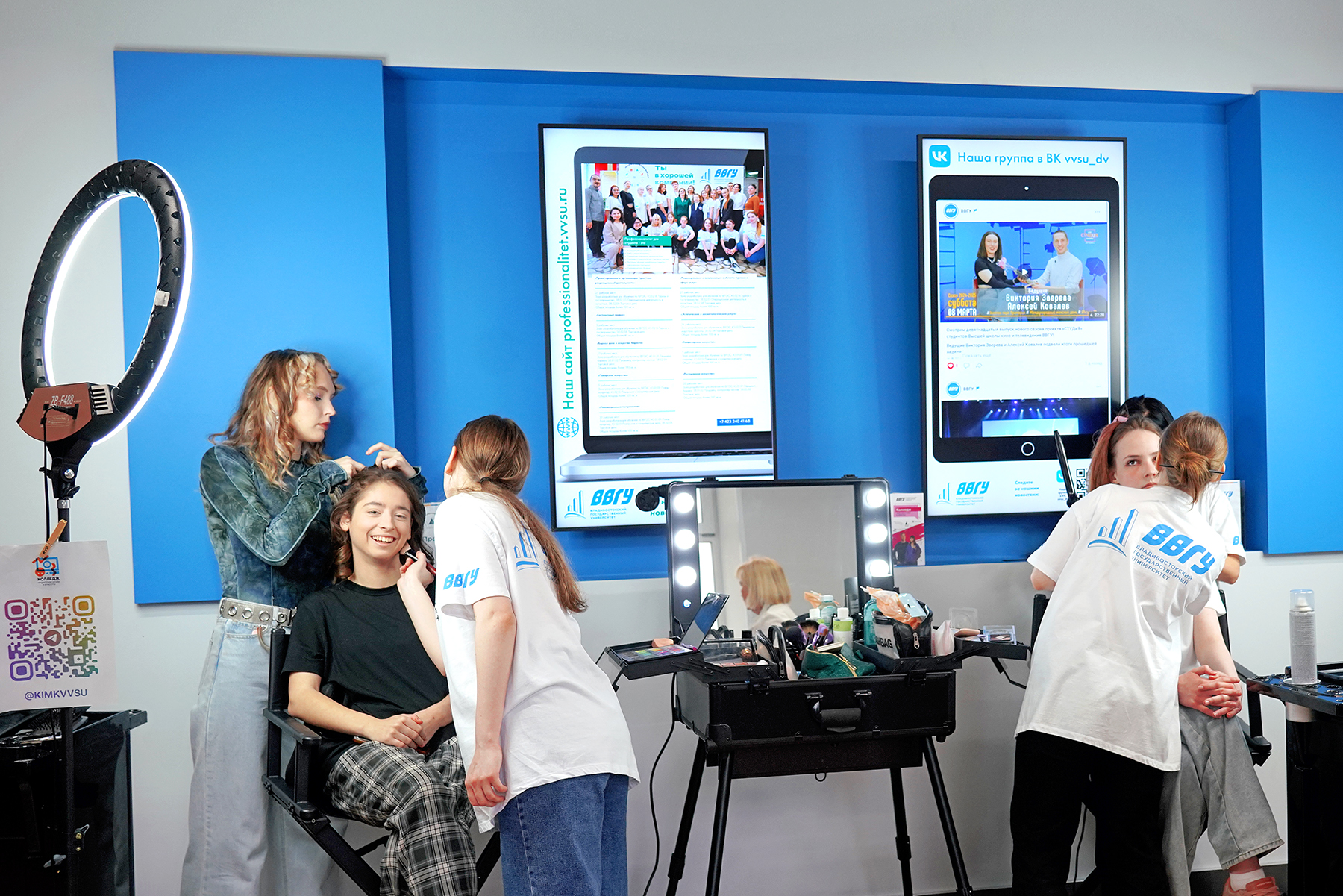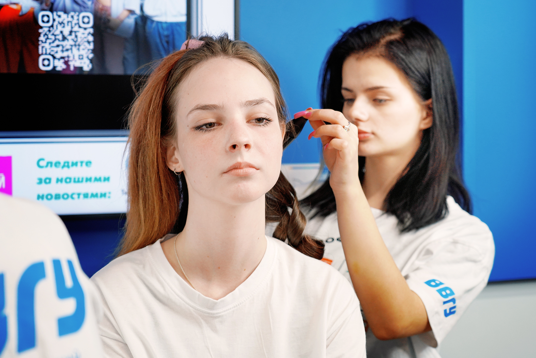 Технологии индустрии красоты в рамках специальностей «Парикмахерское искусство» и «Эстетическая косметология» также были в центре внимания: девушки изучали основы макияжа и техники причесок, создавая вечерний образ для выпускного. Далее представители кластера дали рекомендации по уходу за кожей после макияжа и подбору косметических средств в зависимости от типа кожи