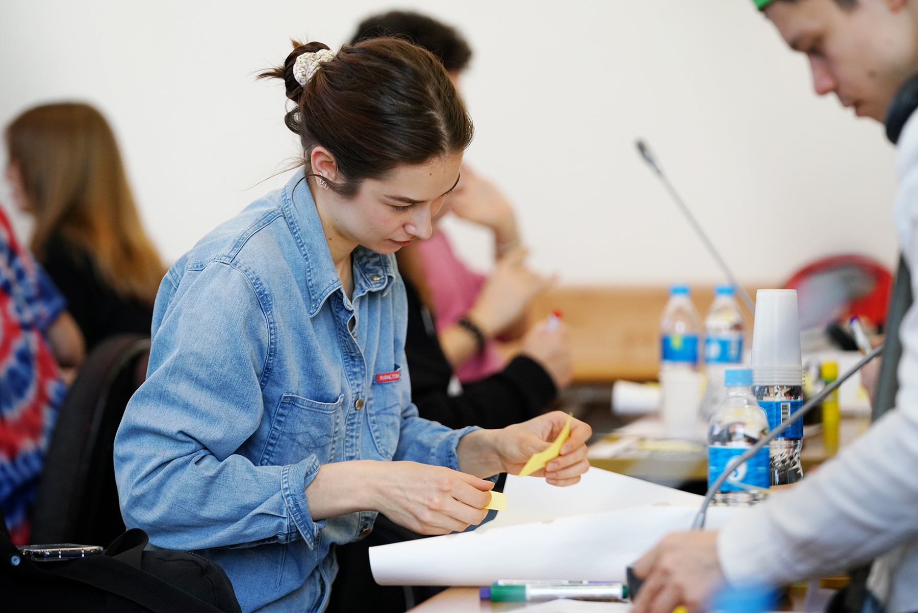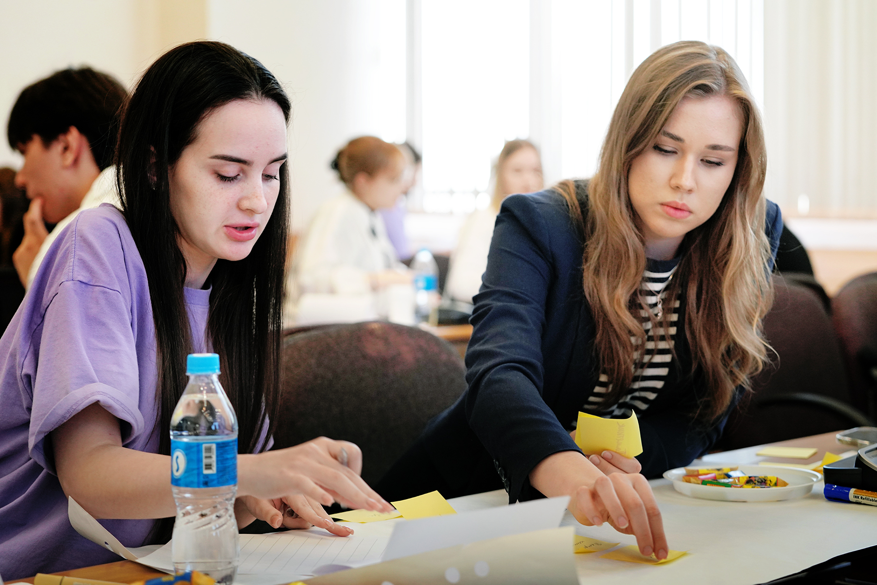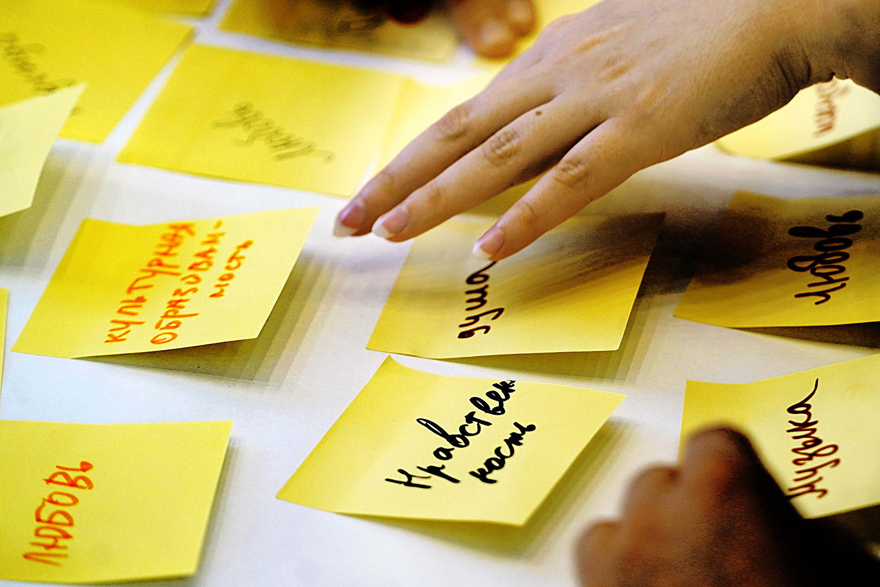 Работа проходила в группах по 3-5 человек, всего 17 групп – по числу тех ценностей, которые обозначены в качестве ключевых духовно-нравственных ориентиров в указе президента Российской Федерации. Ребятам предложили провести ассоциативный эксперимент, во время которого студентам необходимо было придумать по несколько ассоциаций к каждой из 17 ценностей: жизнь, достоинство, патриотизм, милосердие, коллективизм, крепкая семья, гуманизм, гражданственность, справедливость, историческая память и преемственность поколений, служение Отечеству и ответственность за его судьбу, приоритет духовного над материальным, высокие нравственные идеалы, права и свободы человека, единство народов России, созидательный труд, взаимопомощь и уважение. Затем отобрать наиболее значимые или часто повторяющиеся ассоциации.