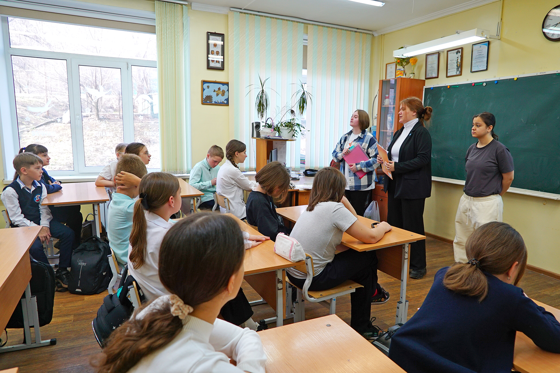 Активисты студенческого научного общества ВВГУ и студенты Академического колледжа провели «Разговоры о важном» с учащимися 5-х и 10-х классов школ № 56 Владивостока. В рамках мероприятия в формате «Ученые в школу» молодые исследователи представили доклады, посвященные 80-летию Великой Победы и событиям Великой Отечественной войны.