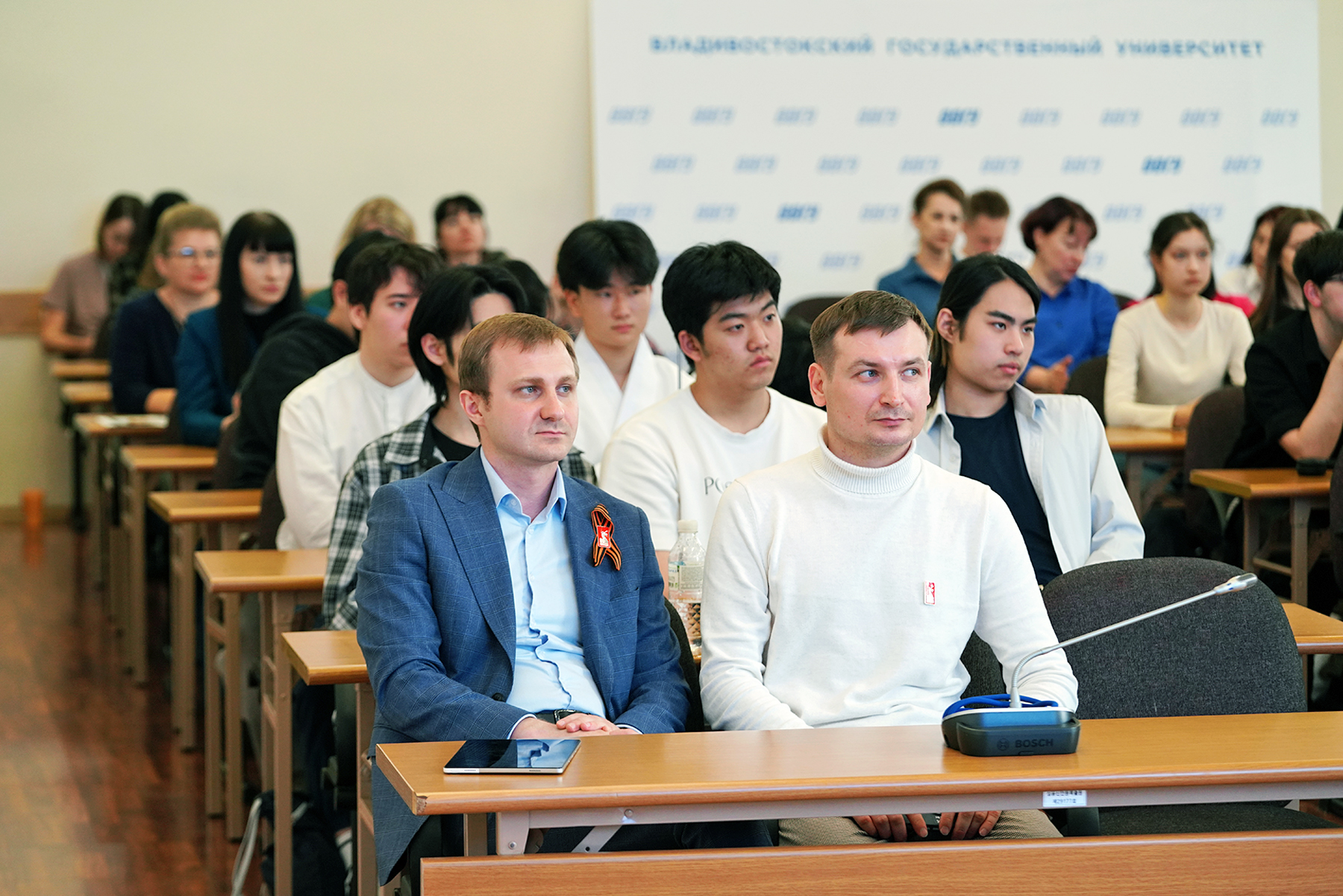 «Я рад приветствовать вас во Владивостокском государственном университете! От имени ректора, преподавателей, сотрудников и всего 15-тысячного студенческого коллектива поздравляю с участием в таком знаменательном событии. Фестиваль проходит в год 80-летия Победы советского народа и союзников во Второй мировой войне – мы не могли обойти стороной эту священную для нашей родины дату», – открыл заседание Сергей Голиков, первый проректор ВВГУ.