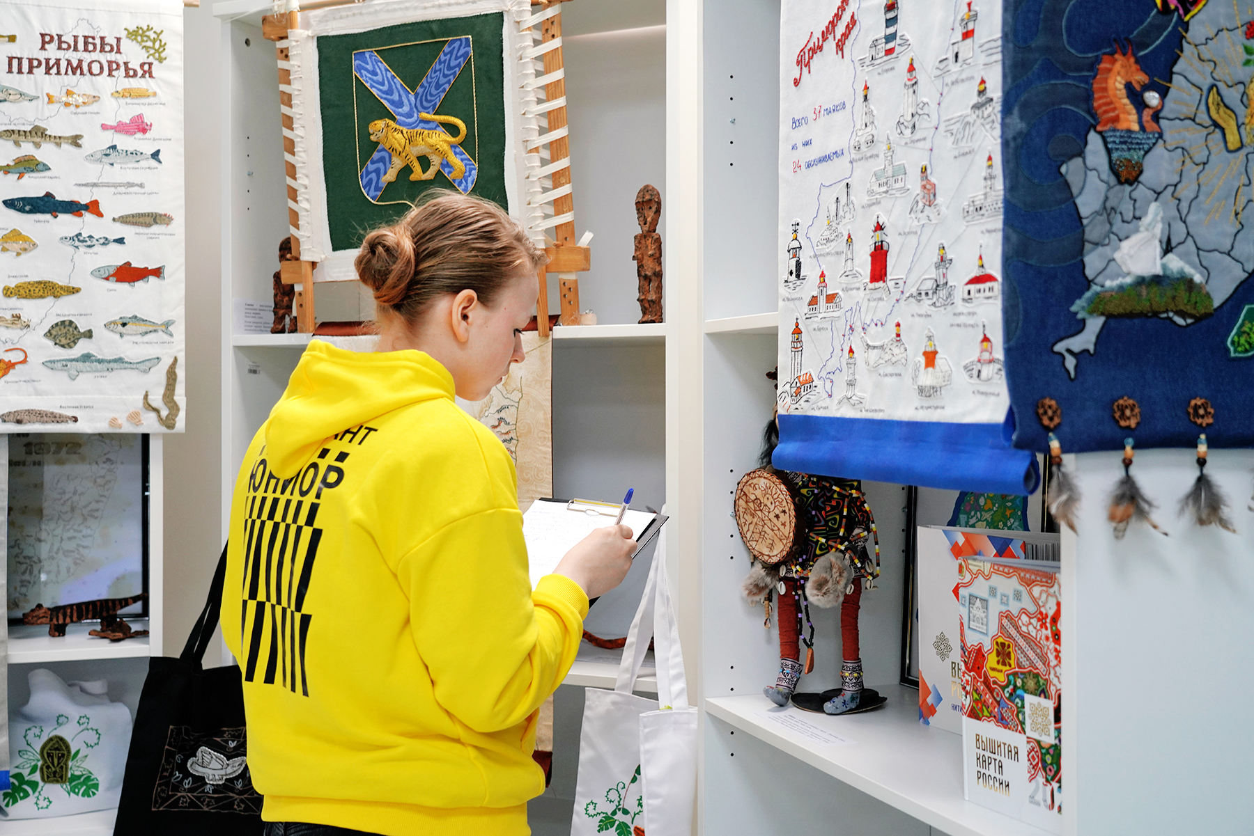 Самым ярким и интересным, но одновременно сложным модулем является проведение экскурсии. Для юниоров была подготовлена экспозиция, посвящённая культуре, достопримечательностям и животному миру Приморского края. Учащиеся проводили экскурсию для гостей, отмечая уникальные детали Приморья.