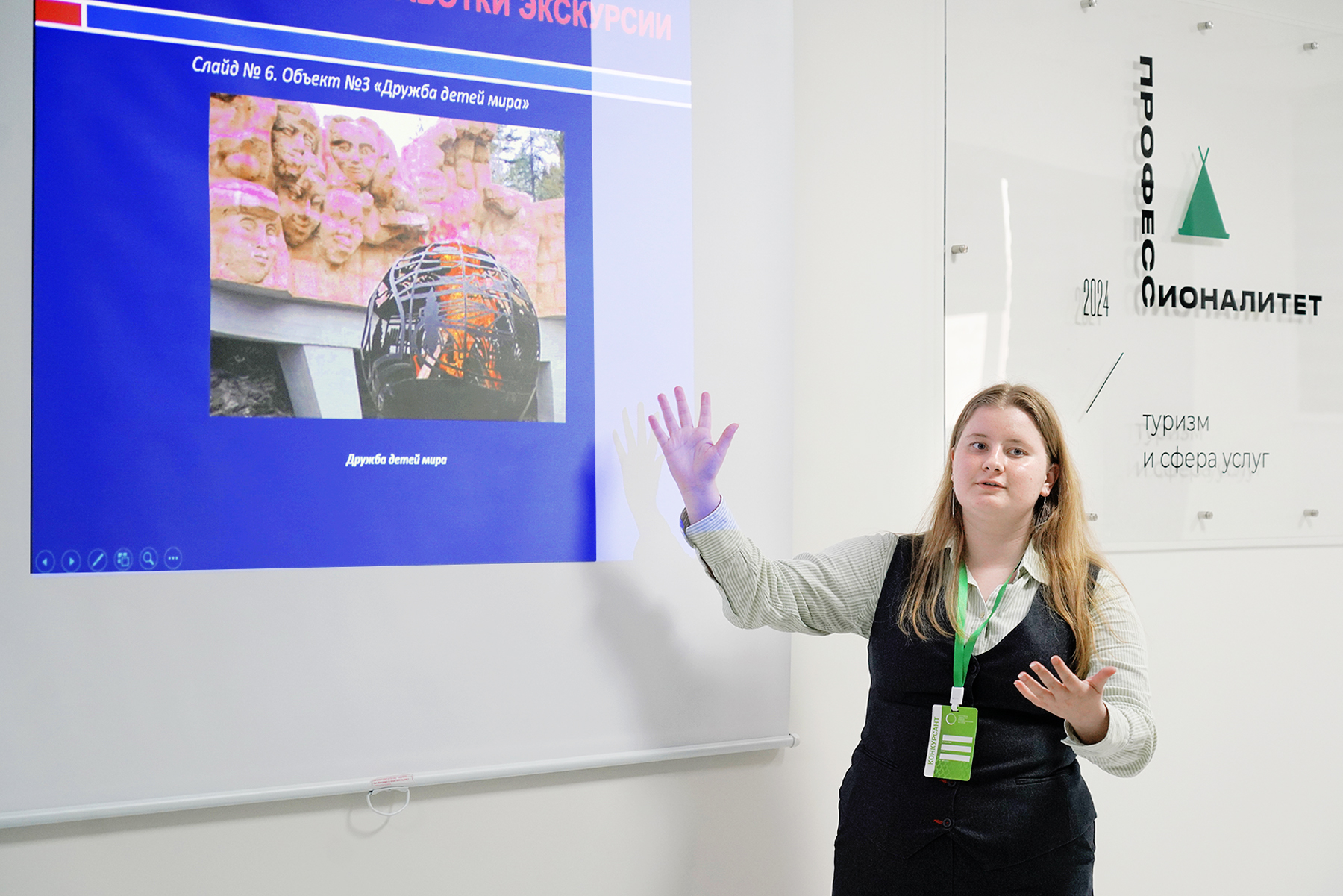 «Меня очень привлекает индустрия туризма, хотелось бы развиваться в этом направлении. Очень интересно получать новые знания и навыки в проведении экскурсий. Поэтому я решила участвовать в чемпионате. Мне это пригодится в будущем, так как я после школы планирую поступать на образовательную программу «Туроператорские и турагентские услуги», – поделилась Полина Башинская, конкурсант по компетенции «Организация экскурсионных услуг-юниоры».