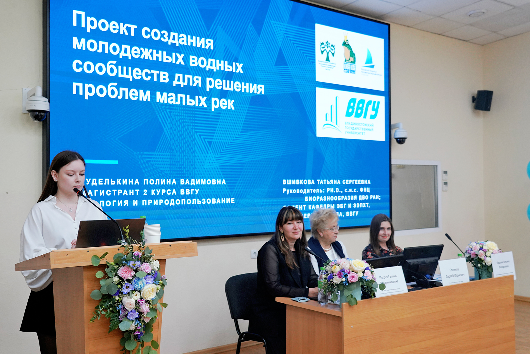 Особую значимость для региона представляет доклад члена СНО, магистранта 2 курса кафедры экологии, биологии и географии Полины Куделькиной. Молодой ученый предложила создать молодежные водные сообщества для решения проблем малых рек и презентовала результаты работы такого сообщества в Приморье.