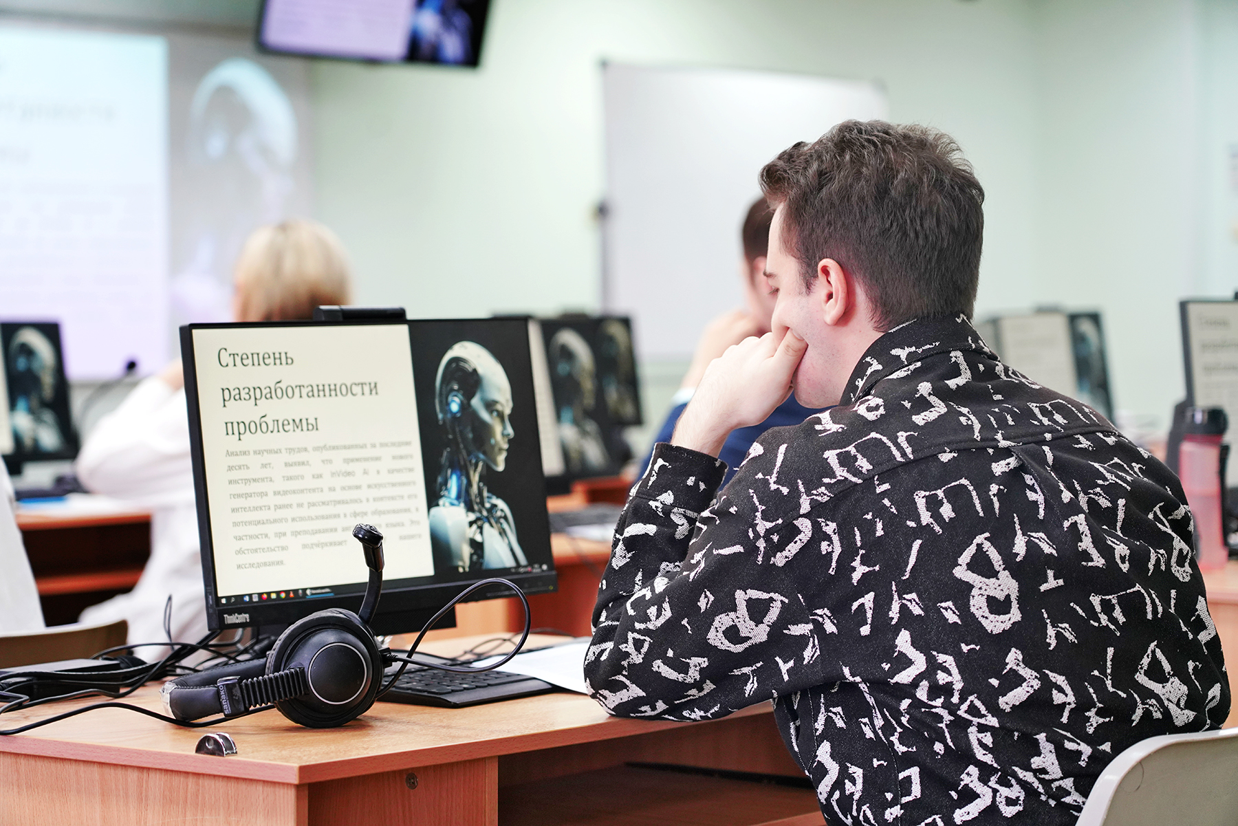 Другую оригинальную концепцию презентовали студенты IT-направлений. Молодые исследователи представили наработки в области медицины, менеджмента, образования, интеллектуальной собственности. Принцип каждой работы прост – человек создаёт продукт во благо человека.