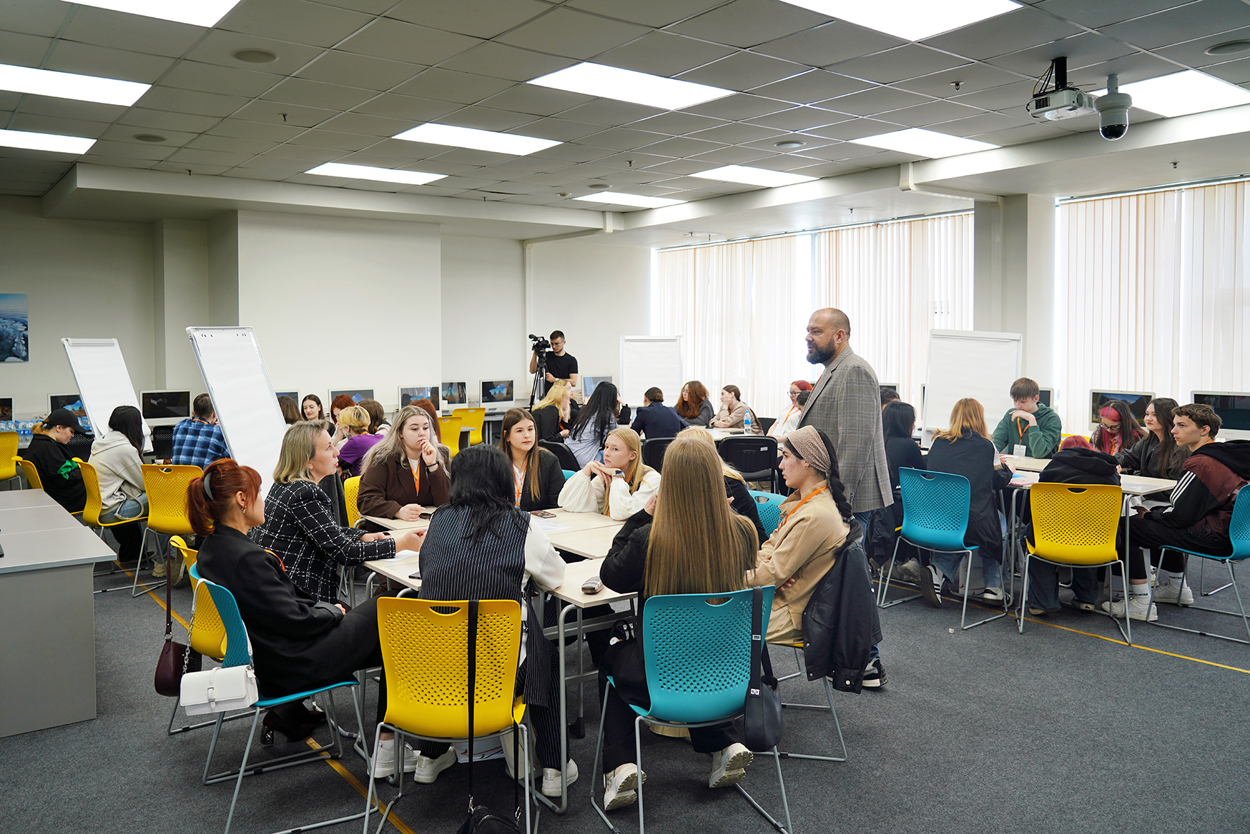 Светлана Пегова, заместитель туризма Камчатского края поделилась со студентами «Профессионалитета» своим опытом, как преподаватель, провела квест-игру с вопросами про туризм и знание языков.